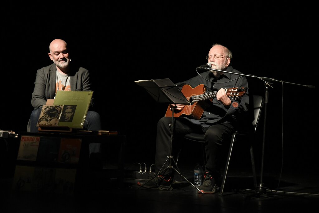 O Auditório Madalena Biscaia Perdigão acolheu na passada terça-feira, dia 23 de setembro, pelas 21h30, mais uma sessão do projeto “Terças com Poesia”, dedicada a Manuel Freire – vida de poemas e canções, com a presença de Manuel Freire e do diseur Isaque Ferreira.