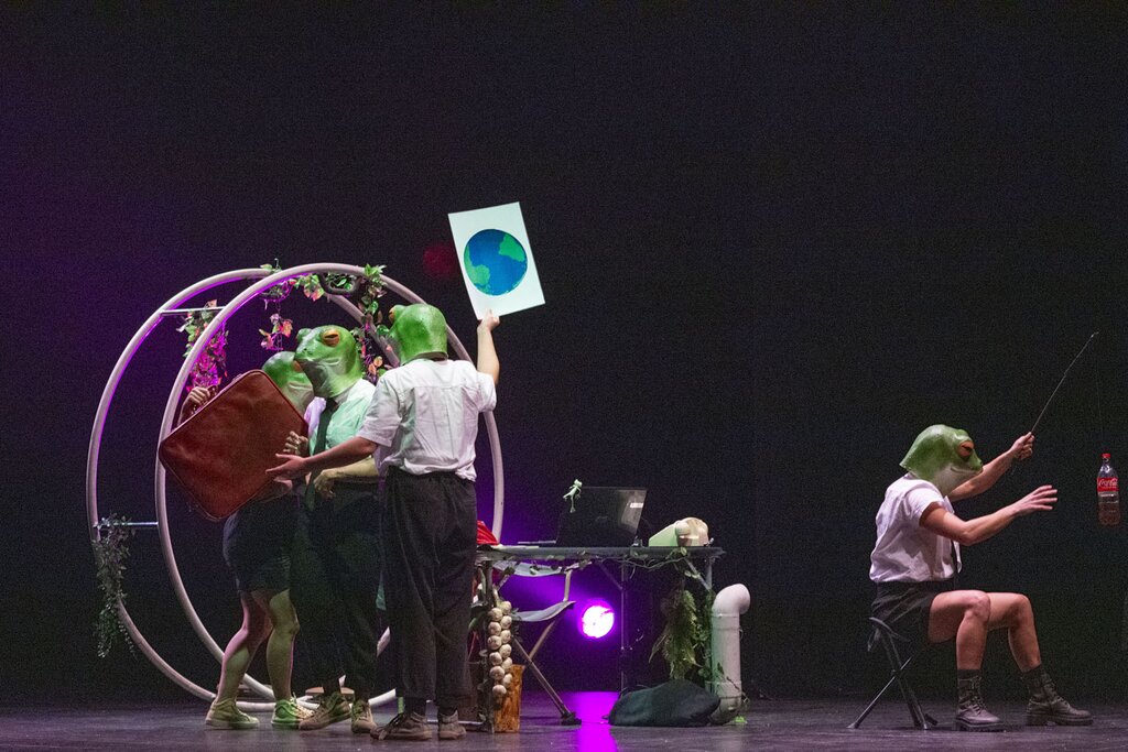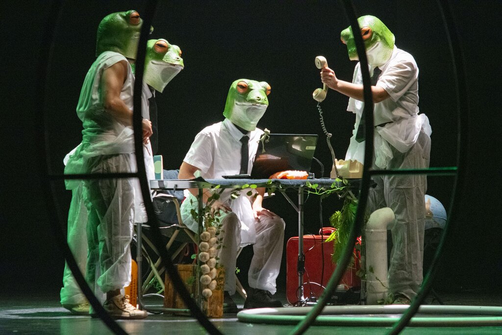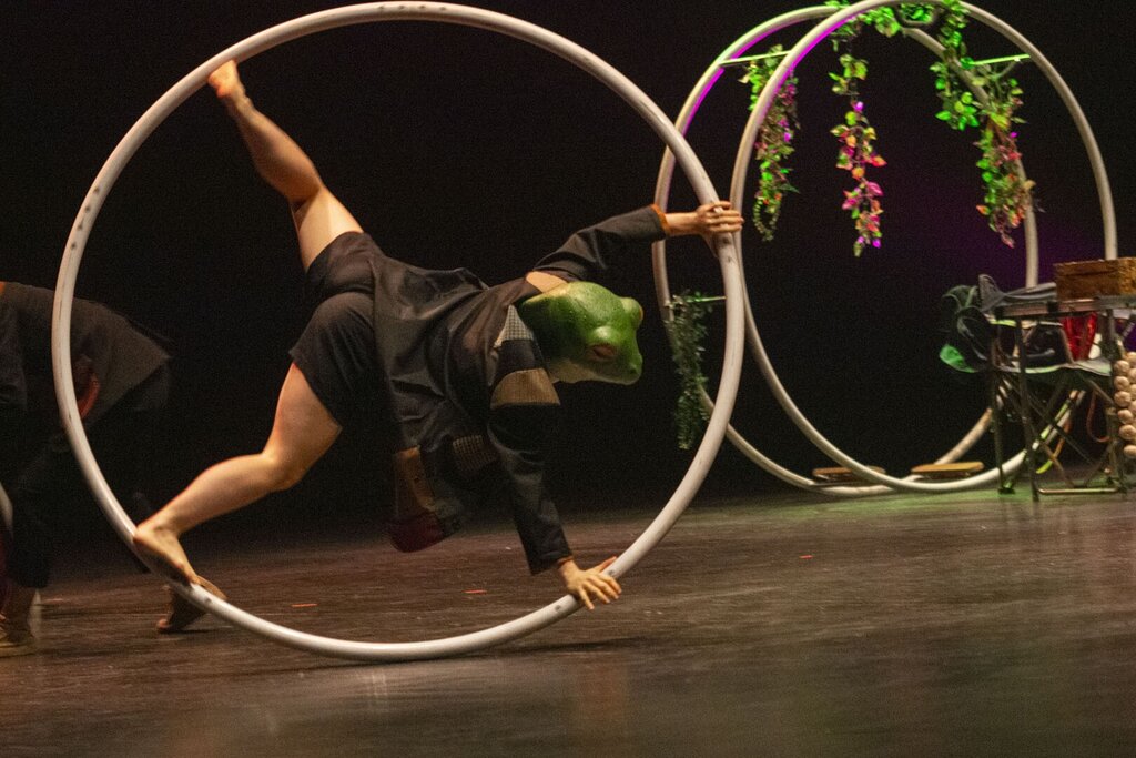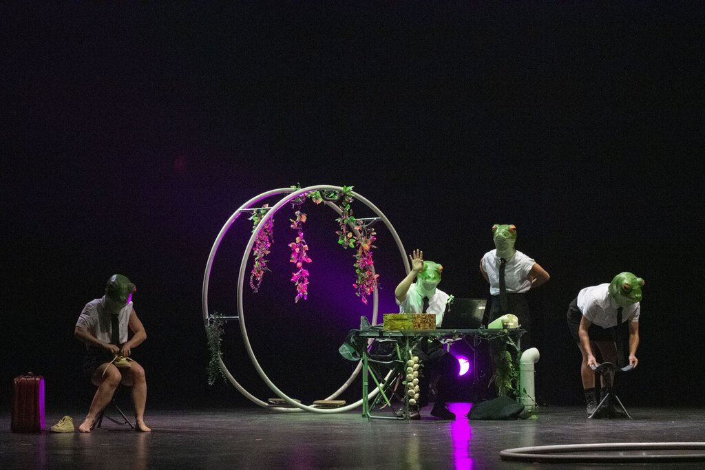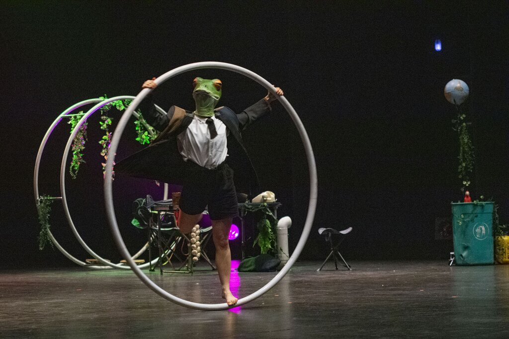 No espetáculo "Heqet" o circo contemporâneo serviu de veículo para uma reflexão urgente sobre as consequências das ações humanas sobre o planeta, destacando as mudanças climáticas extremas.