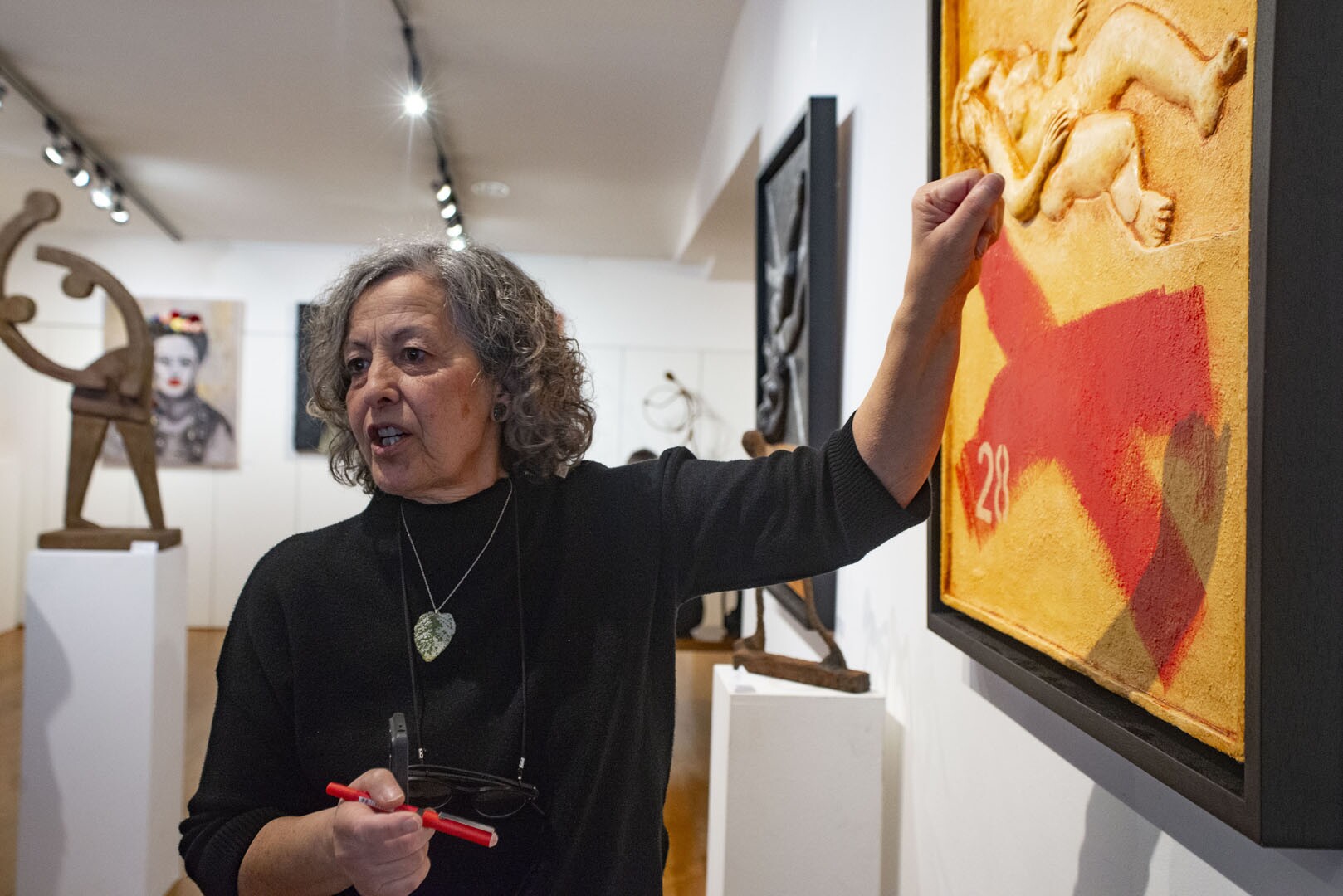 Através de uma notável versatilidade técnica, onde se cruzam o desenho, o carvão, o acrílico, o papier maché, os tecidos e a bijuteria, a artista cria plasticidades particulares e originais. O resultado são quadros e esculturas em baixo-relevo que ganham vida, convidando o visitante a percorrer com o olhar cada detalhe, cada textura, cada história silenciosa.