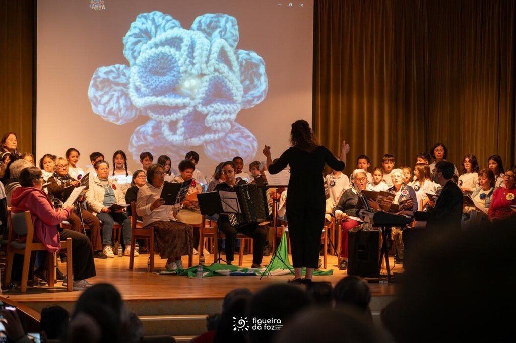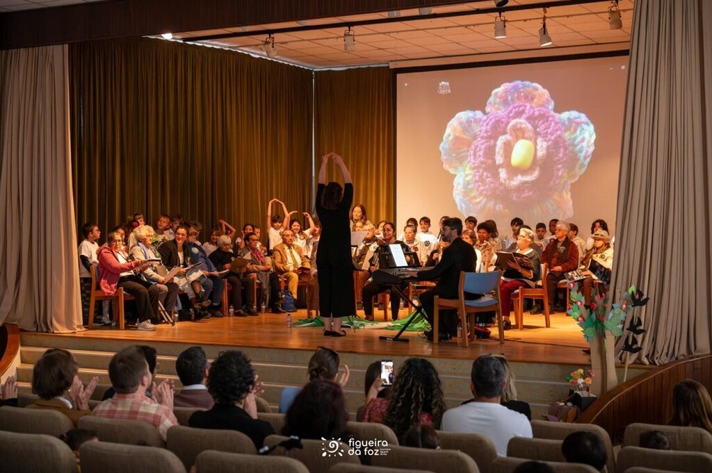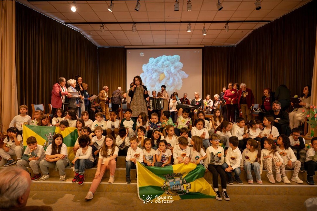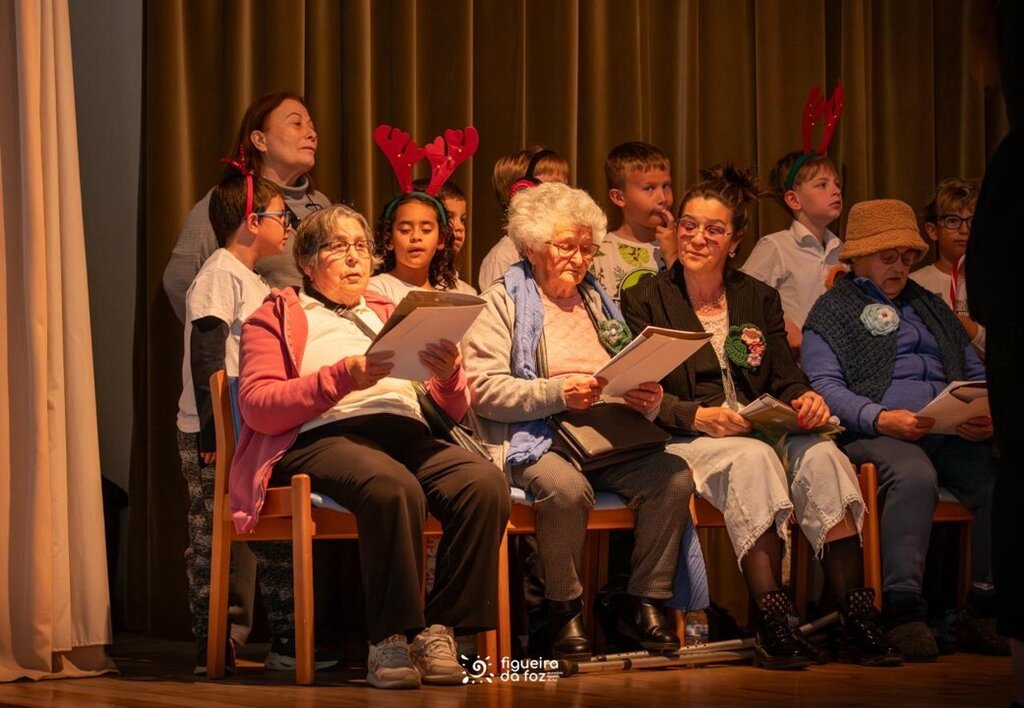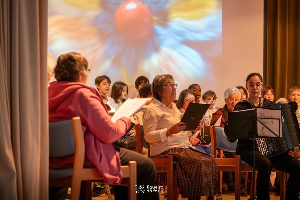 Em palco estiveram utentes do Centro Social e Paroquial de São Martinho (Tavarede), do Centro Social e Paroquial Sanctus Petrus (São Pedro) e do Centro de Dia do Centro Social São Salvador (Maiorca), e crianças das turmas 2º C e 2º D da Escola Básica das Abadias. Na plateia, familiares e amigos dos participantes no projeto, o presidente da Câmara Municipal da Figueira da Foz, Pedro Santana Lopes, a vereadora da Ação Social e Educação, Olga Brás, e a vereadora da Cultura, Cláudia Rocha.