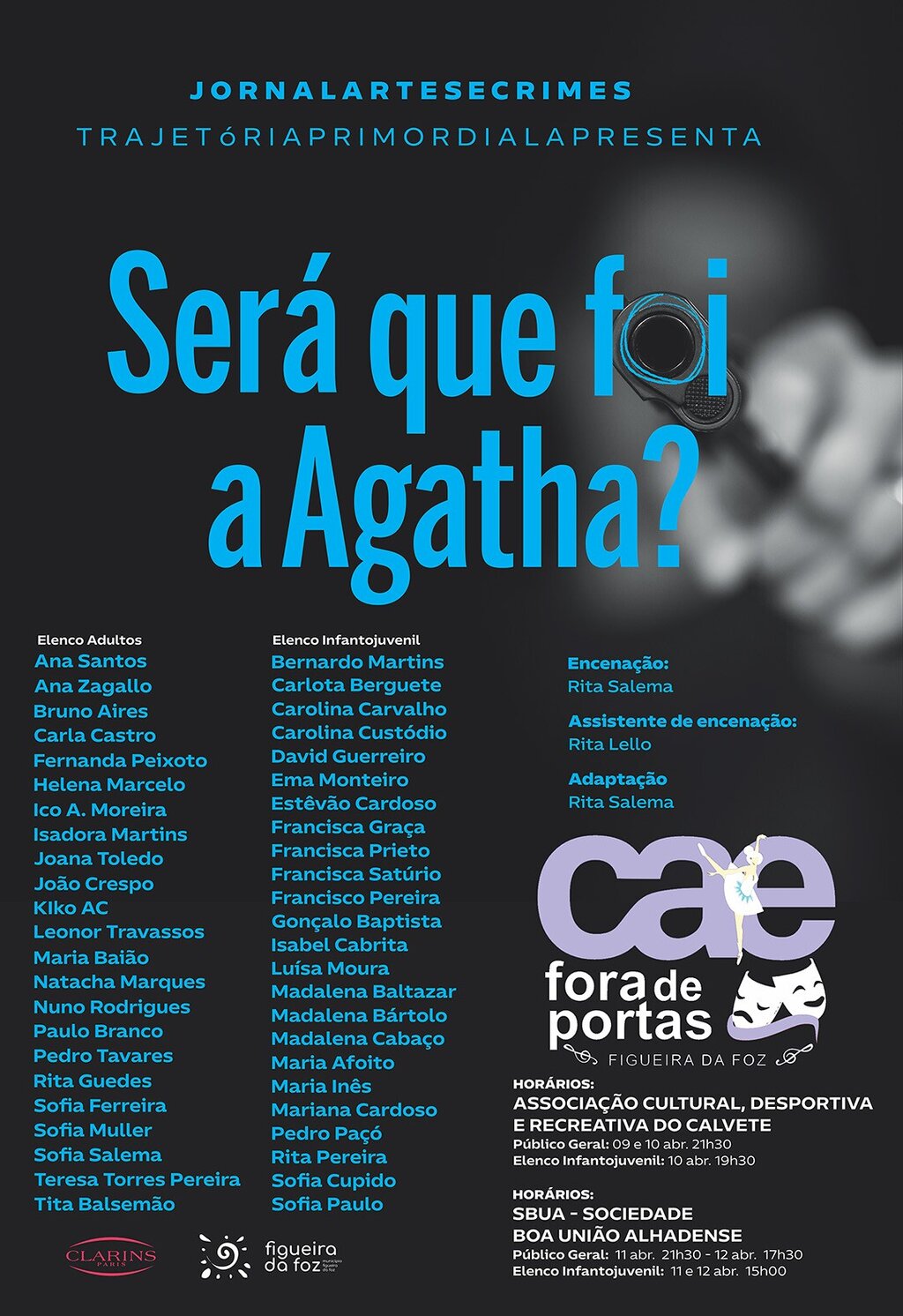Entre os dias 9 e 12 de abril, a atriz Rita Salema estará em residência artística no concelho. Apresentará a peça "Será que foi a Agatha?” e orientará 4 workshops de teatro para a comunidade.