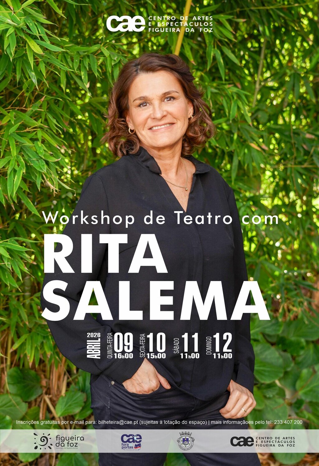 Paralelamente, Rita Salema orientará nos dias 9, 10, 11 e 12 de abril, quatro workshops de teatro (dias 9 às 16h00, 10 às 15h00; dias 11 e 12 às 11h00, propondo exercícios de expressão corporal, voz, improvisação e jogos teatrais.