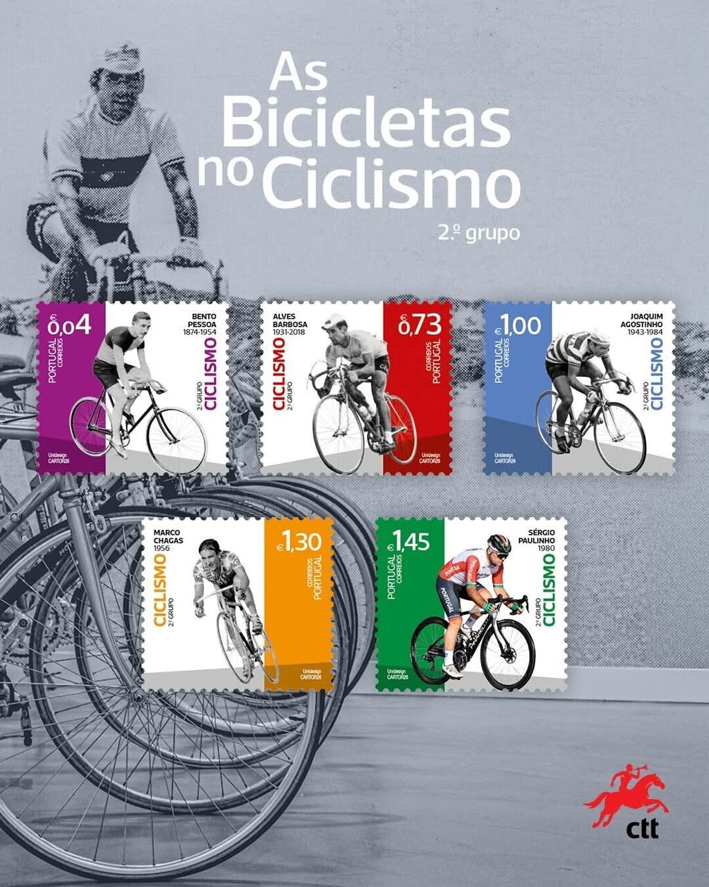 Os CTT – Correios de Portugal lançaram recentemente uma nova coleção de selos , com valores faciais entre os 0,04 euros e 1,45 euros, dedicada a alguns dos ciclistas que marcaram o período áureo do ciclismo nacional entre o século XX e o início do século XXI. Cada selo evoca um capítulo de uma história feita de esforço, estrada e glória.