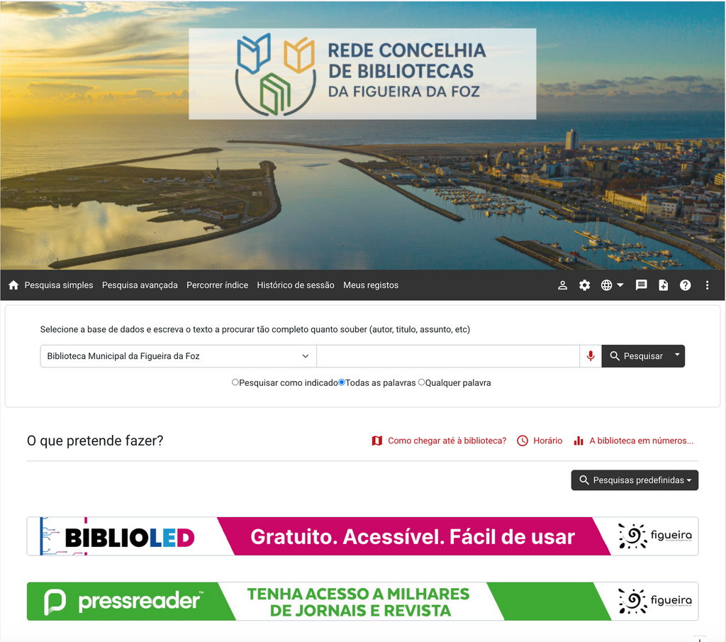 O catálogo pode ser acedido em: https://bibliotecas.cm-figfoz.pt/Opac/Pages/Help/Start.aspx