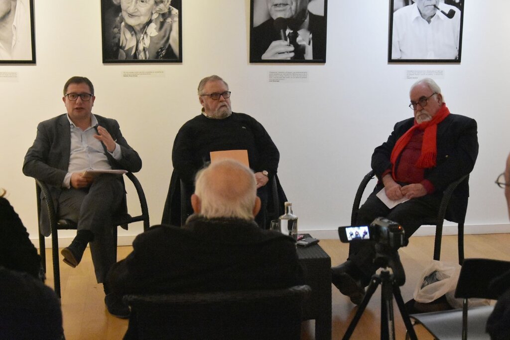 Decorreu no passado sábado, 25 de janeiro, pelas 15h30, na Sala 3 do Centro de Artes e Espectáculos (CAE), no âmbito da exposição fotográfica “Escritores, Memórias e Olhares”, de Fernando Bento, patente no CAE até 2 de Fevereiro, um encontro com o escritor Mário Cláudio, que contou com a moderação do curador da exposição e também ele escritor, Luís Machado, e com a presença do vereador da Cultura, Nuno Gonçalves, e de uma vasta plateia de interessados em literatura.