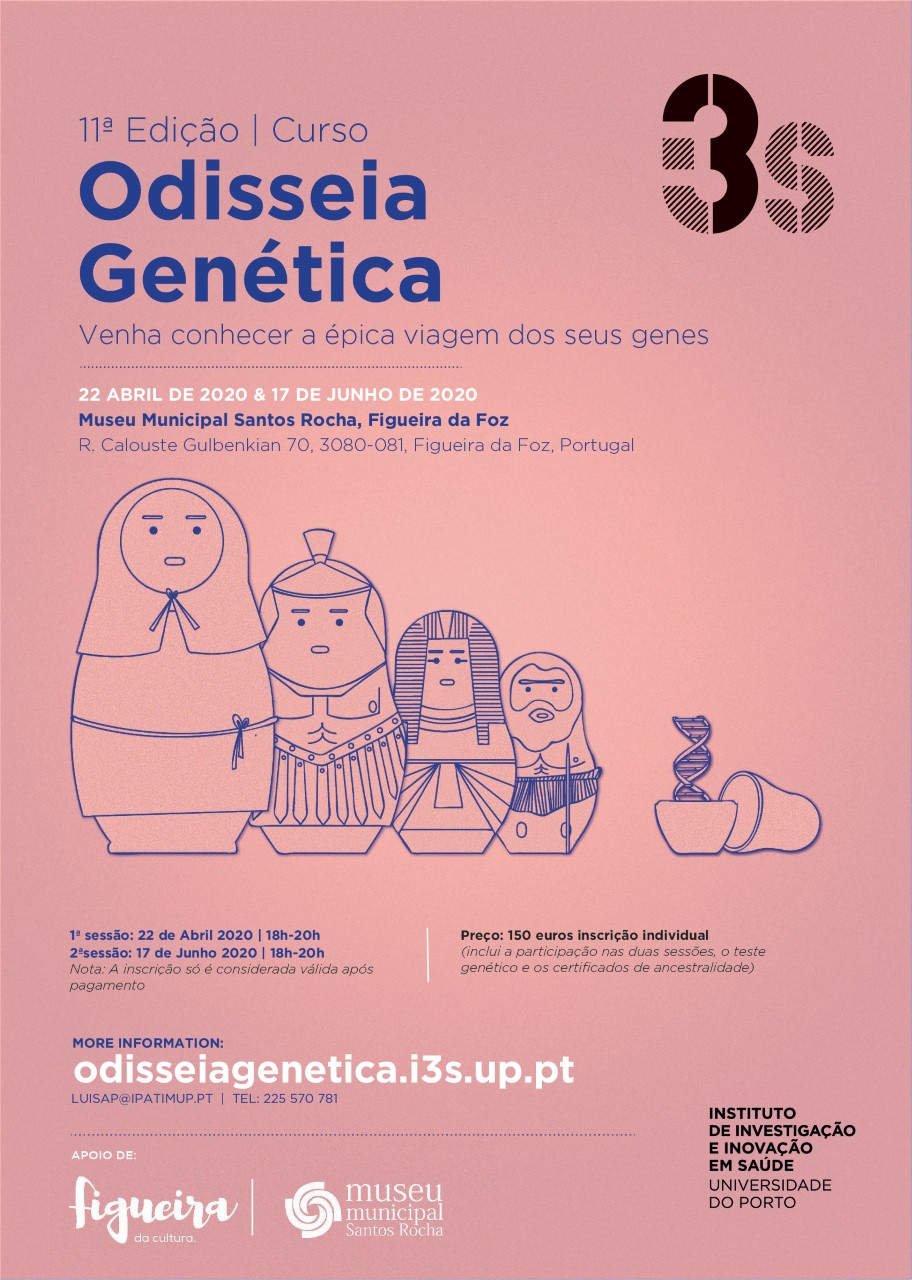 «Odisseia Genética» é o nome do curso promovido por três investigadoras do Instituto de Investigação e Inovação em Saúde (i3S) da Universidade do Porto do i3S: Luísa Pereira, investigadora e líder de grupo no instituto, Verónica Fernandes, investigadora pós-doutorada no grupo Diversidade Genética, e Maria-Céu Moreira, investigadora em genética humana, cuja 11ª edição está agenda para os dias 22 de abril e 17 de junho, no Museu Municipal Santos Rocha, e pretende permitir aos participantes conhecer a origem dos seus antepassados através da história que os genes escondem.