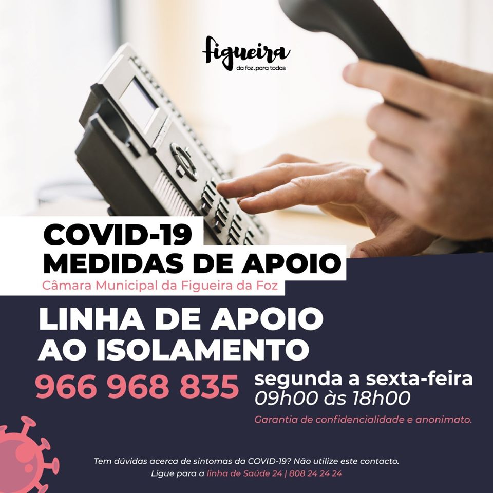O Município da Figueira da Foz vai ter em funcionamento, a partir da próxima segunda-feira, 30 de março de 2020, uma linha telefónica de apoio ao isolamento, cujo objetivo é ajudar a comunidade a lidar com as situações de ansiedade e inquietude, durante o período da pandemia de Covid-19.