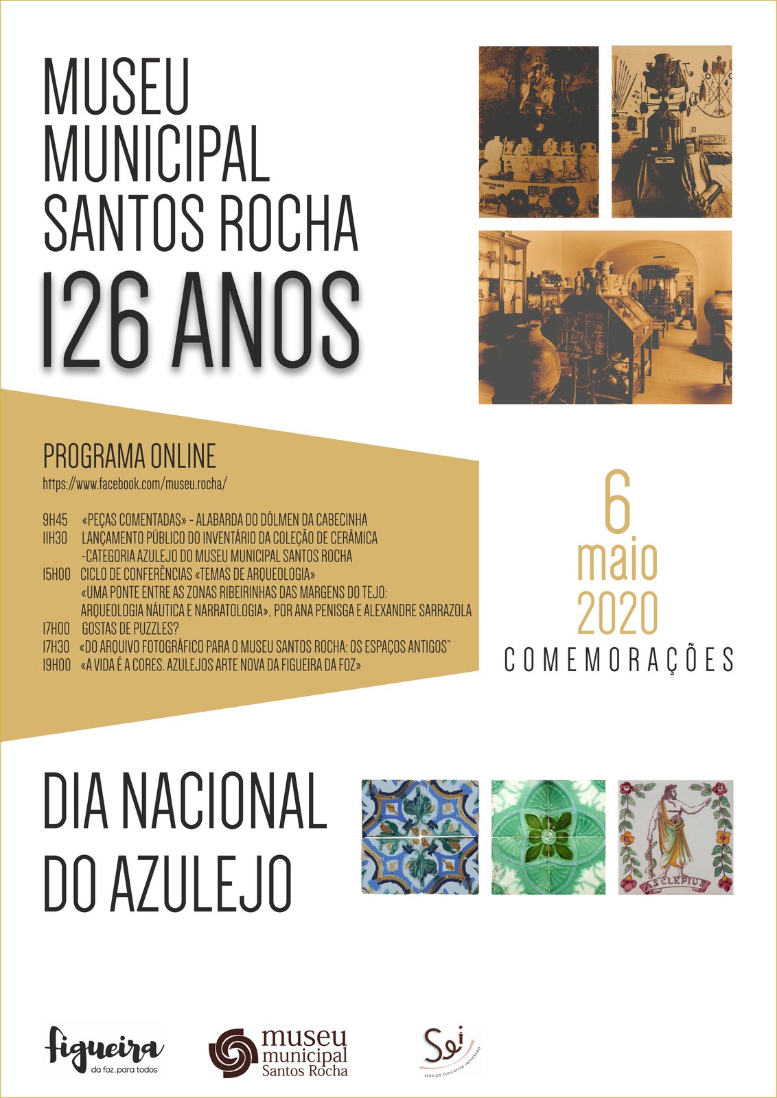 O Museu Municipal Santos Rocha comemora dia 06 de maio o seu 126º aniversário. A data é coincidente com a celebração do Dia Nacional do Azulejo, motivo pelo qual o programa de atividades comemorativas do aniversário do Museu Municipal integrará iniciativas de promoção e divulgação do património azulejar do concelho.