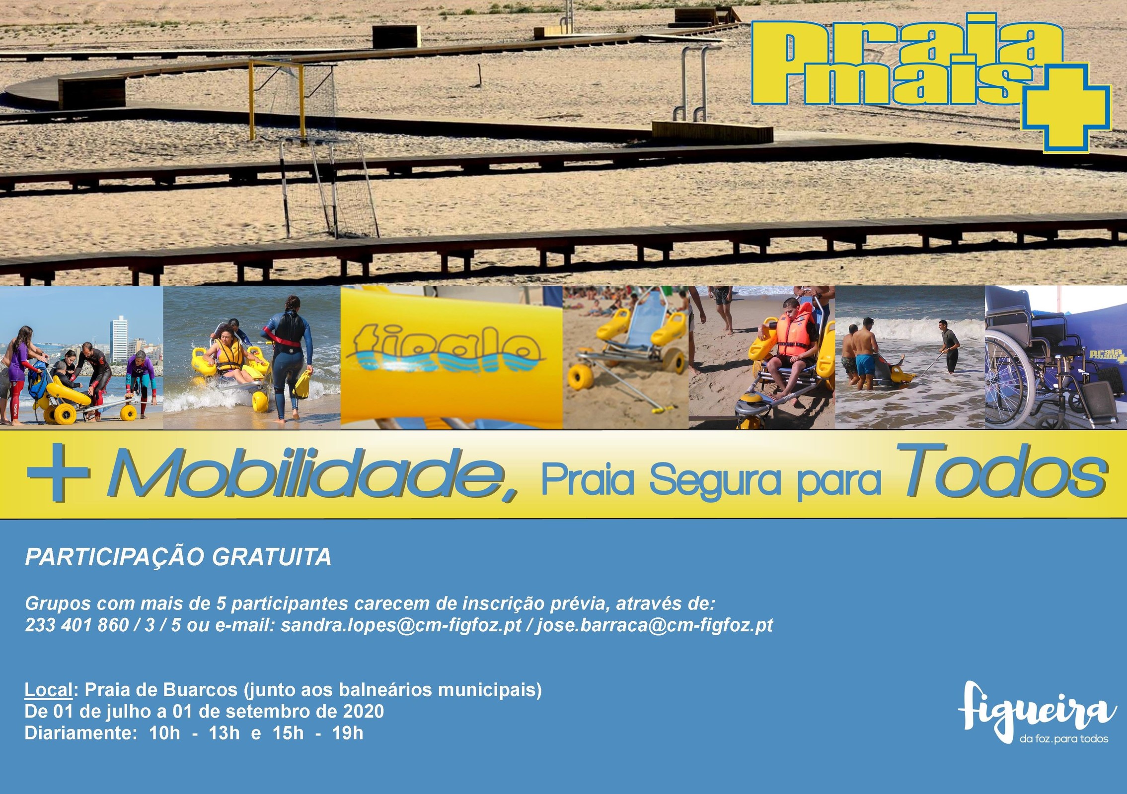 O Projeto “Praia M+ - Mais Mobilidade, Praia Segura para Todos”, implementado em 2005 pelo Município da Figueira da Foz, permite servir a população local com deficiência motora e/ou mobilidade reduzida, mas também as pessoas com deficiência oriundas dos mais diversos locais do País, que pretendem usufruir da praia e ir a banhos.
