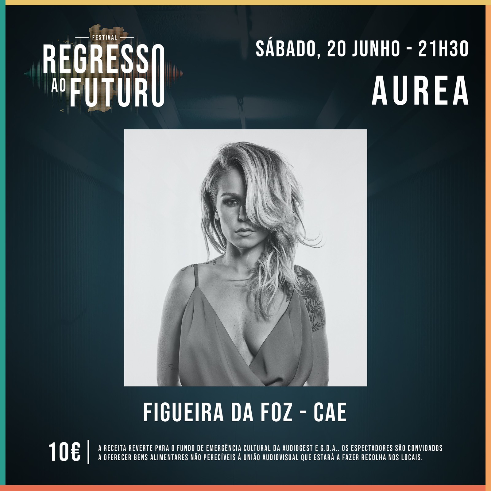 Por sua vez, no dia 20 de junho, pelas 21h30, o Grande Auditório recebe um espetáculo de AUREA, no âmbito do festival “Regresso ao Futuro”. Os bilhetes têm o preço único de 10,00€ e estarão à venda a partir de terça-feira, 9 de junho, nos locais habituais, na bilheteira do CAE.