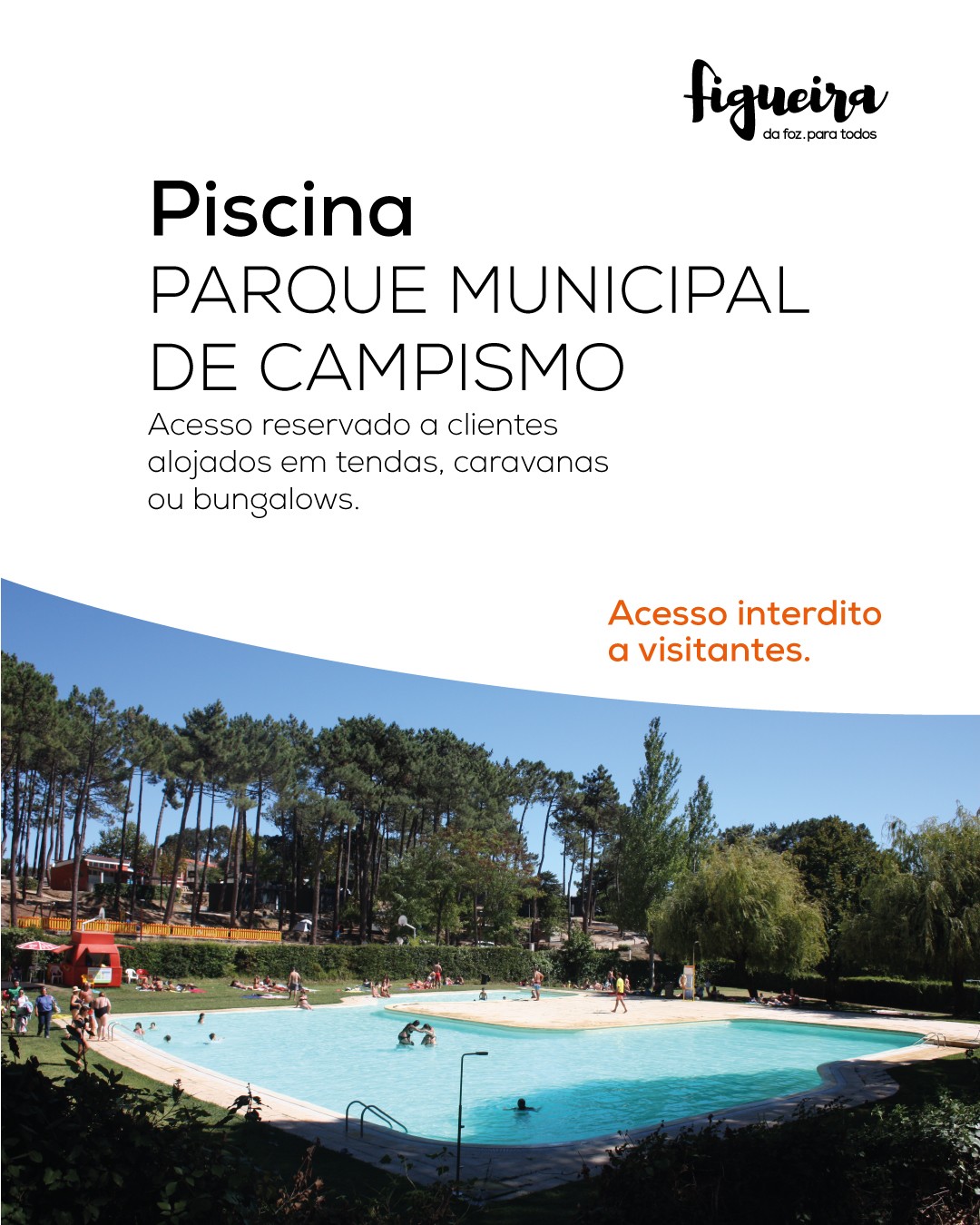 O Município da Figueira da Foz informa que, no estrito cumprimento do Plano de Contingência do Parque Municipal de Campismo, a utilização da piscina é de uso exclusivo a clientes do Parque, que se encontrem alojados em tendas, caravanas ou bungalows.