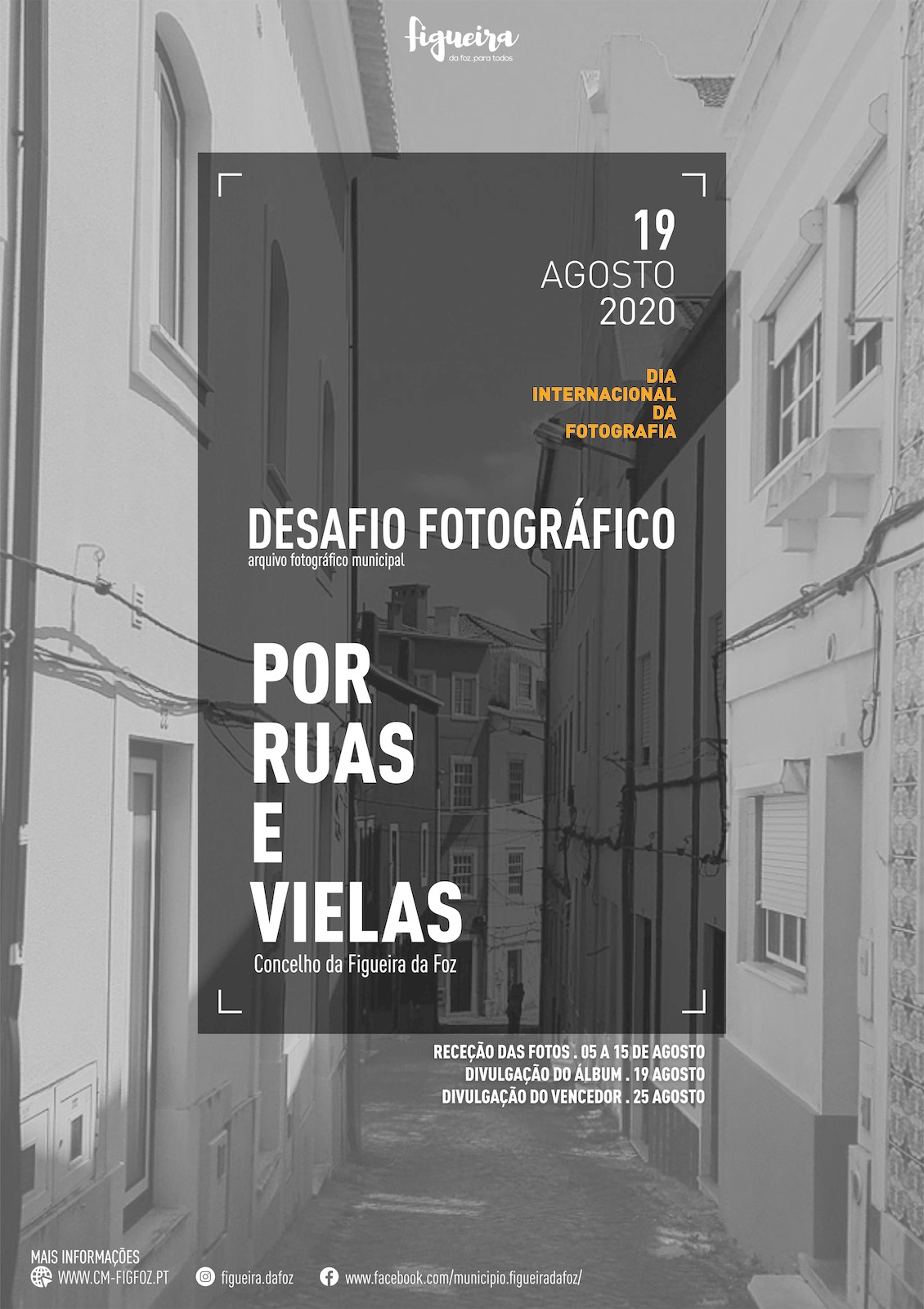 Sob o tema Por ruas e vielas do Concelho da Figueira da Foz, o Município convida todos/as os /as amantes da arte de fotografar, a captar a essência, beleza, história e estórias de cada canto, recanto, rua e viela do concelho.