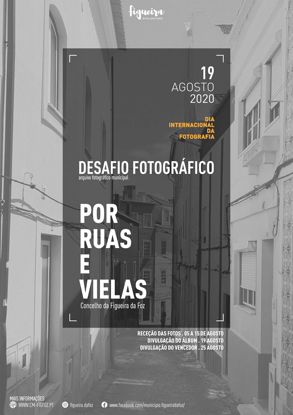 Após validação, as imagens recebidas irão integrar o álbum digital Por rua e vielas, que será publicado, dia 19 de agosto, na página de facebook do Município https://www.facebook.com/municipio.figueiradafoz, O álbum ficará disponível até 24 de agosto.