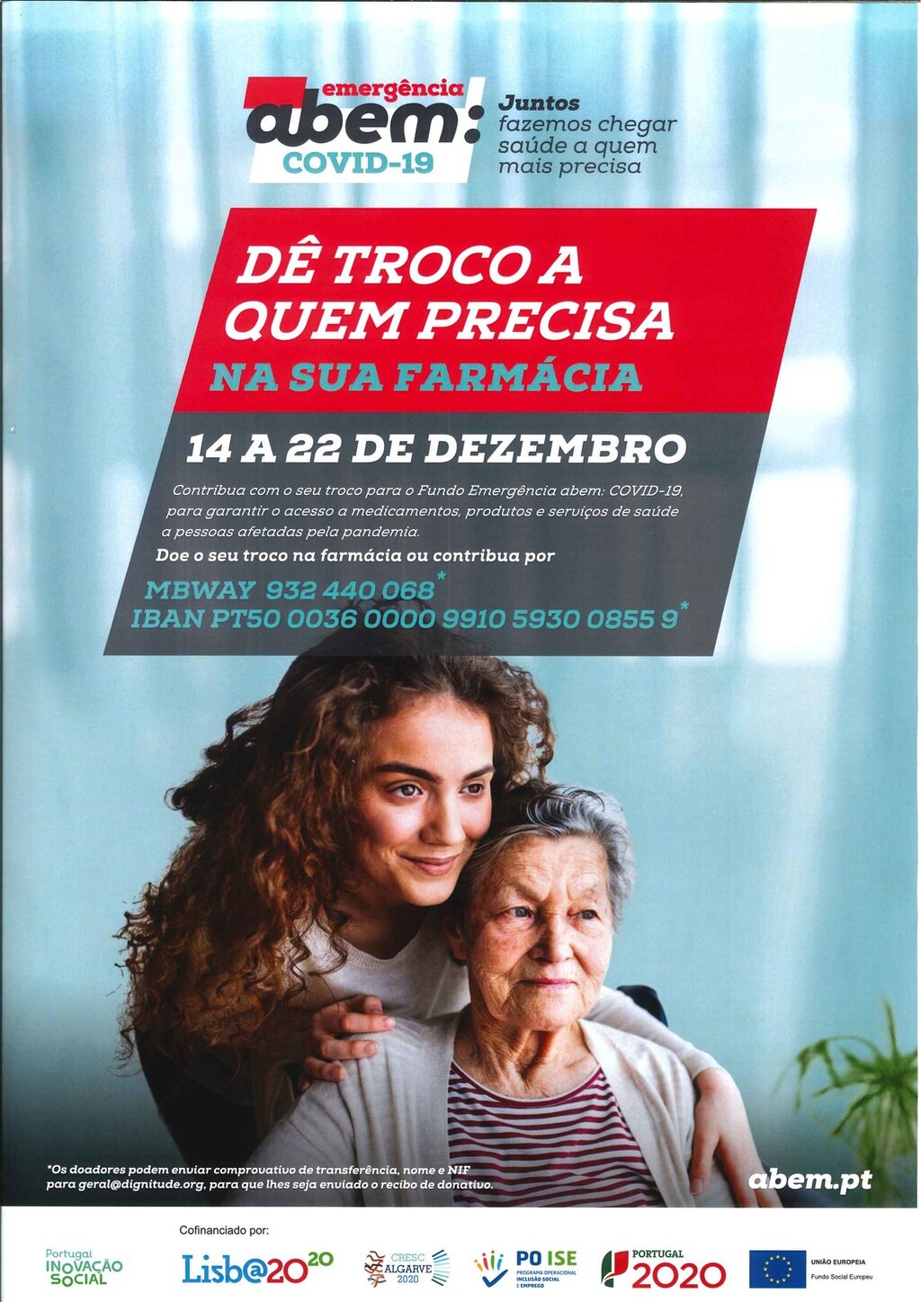 Este ano, entre 14 e 22 de dezembro, os portugueses são convidados a doar o troco das compras realizadas nas farmácias à «Emergência abem: COVID-19». Os donativos recolhidos serão integralmente aplicados no acesso a medicamentos, produtos e serviços de saúde por pessoas carenciadas e mais fragilizadas devido à pandemia.