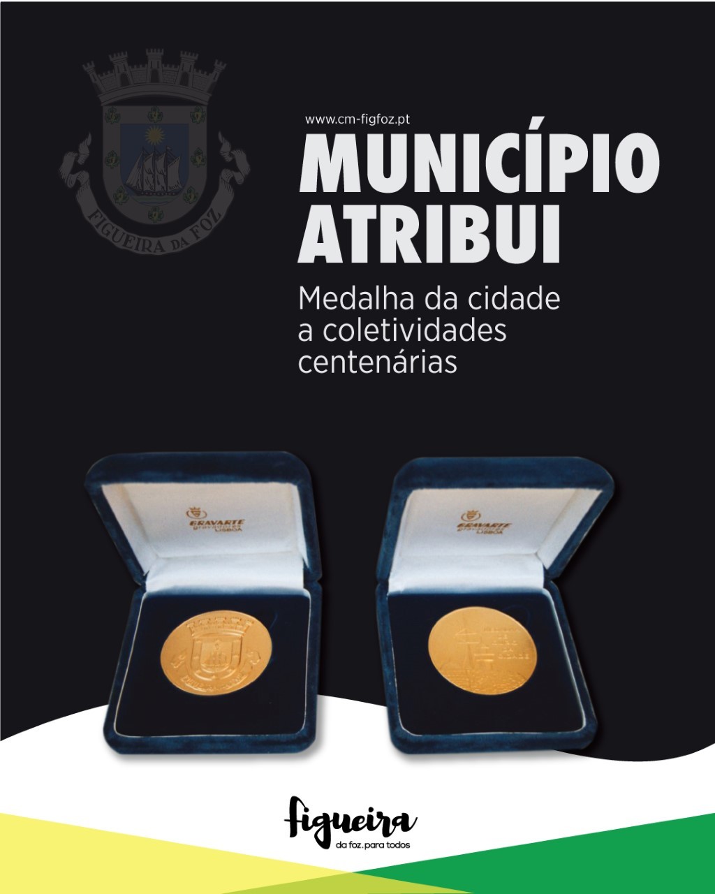 Foram ontem aprovadas em reunião de Câmara, por unanimidade, as propostas de atribuição da Medalha da Cidade a 5 Coletividades do concelho, pelos seus 100 anos de existência e como forma de lhes prestar público apreço pelo seu contributo continuado para o progresso e o bom nome da Cidade e do Concelho.