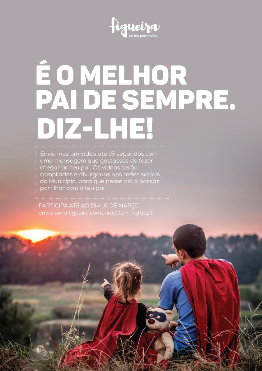 Numa época onde muitos de nós estamos privados de estar com a família, o Município da Figueira da Foz lança a iniciativa “É o melhor pai de sempre. Diz-lhe” que solicita às pessoas que enviem um vídeo com uma mensagem que gostassem que fosse transmitida ao pai.