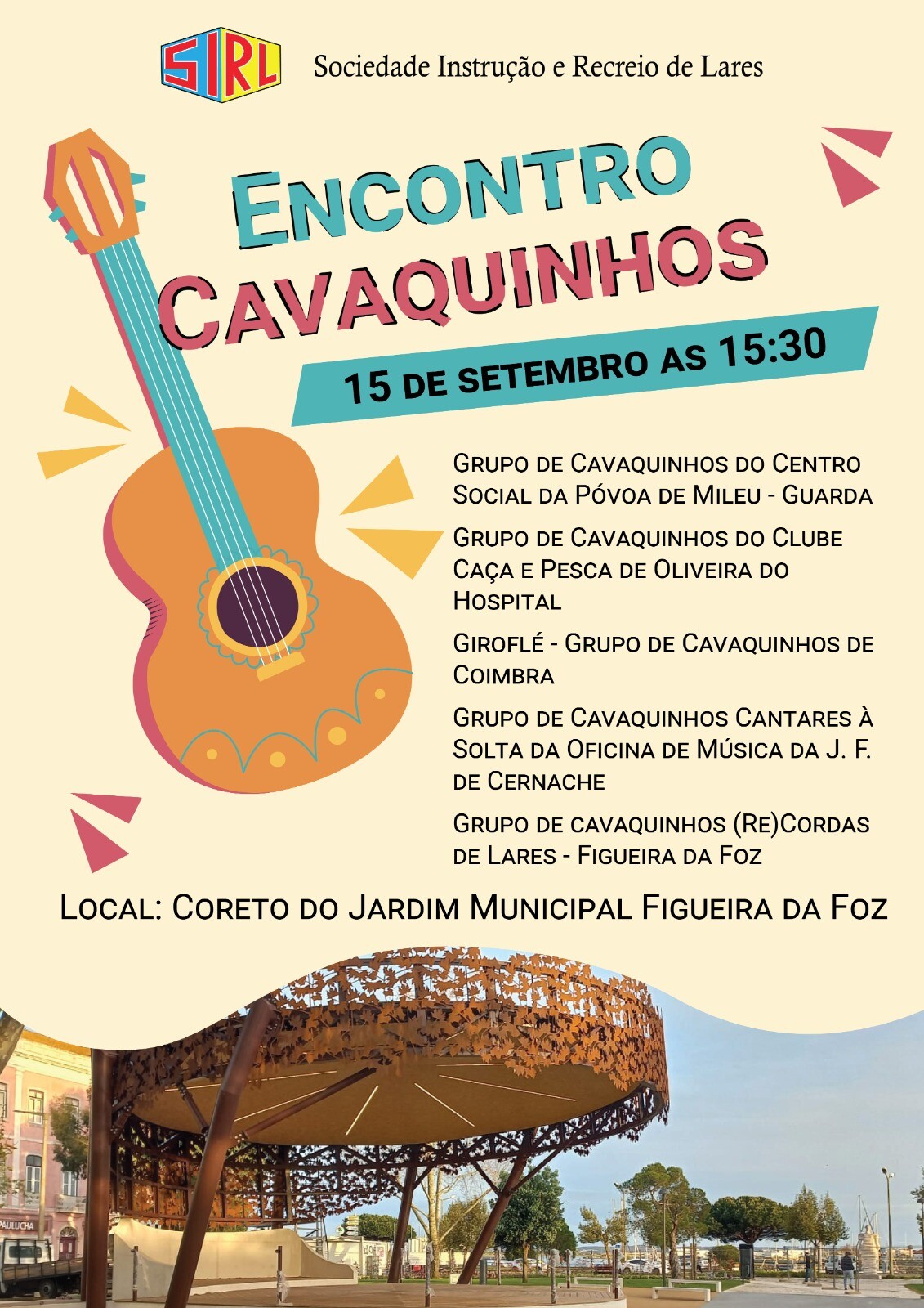 O Encontro de Cavaquinhos, promovido pela Sociedade Instrução e Recreio de Lares, irá contar com a participação: