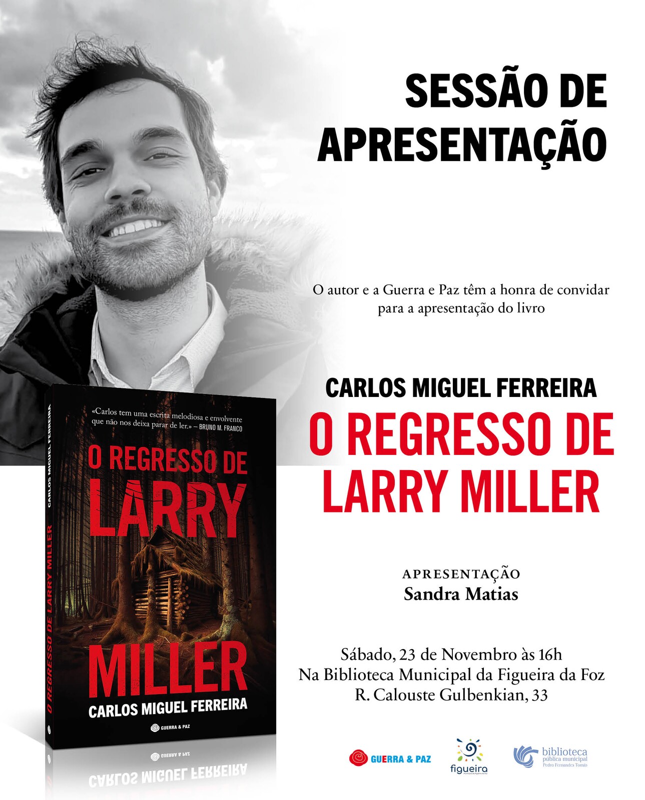 «O Regresso de Larry Miller», livro de estreia de Carlos Miguel Ferreira, é-nos descrito pela editora Guerra & Paz como “arrebatador”, “Um thriller português de leitura compulsiva” e “mais uma prova do bem que os jovens escritores portugueses podem escrever.”
