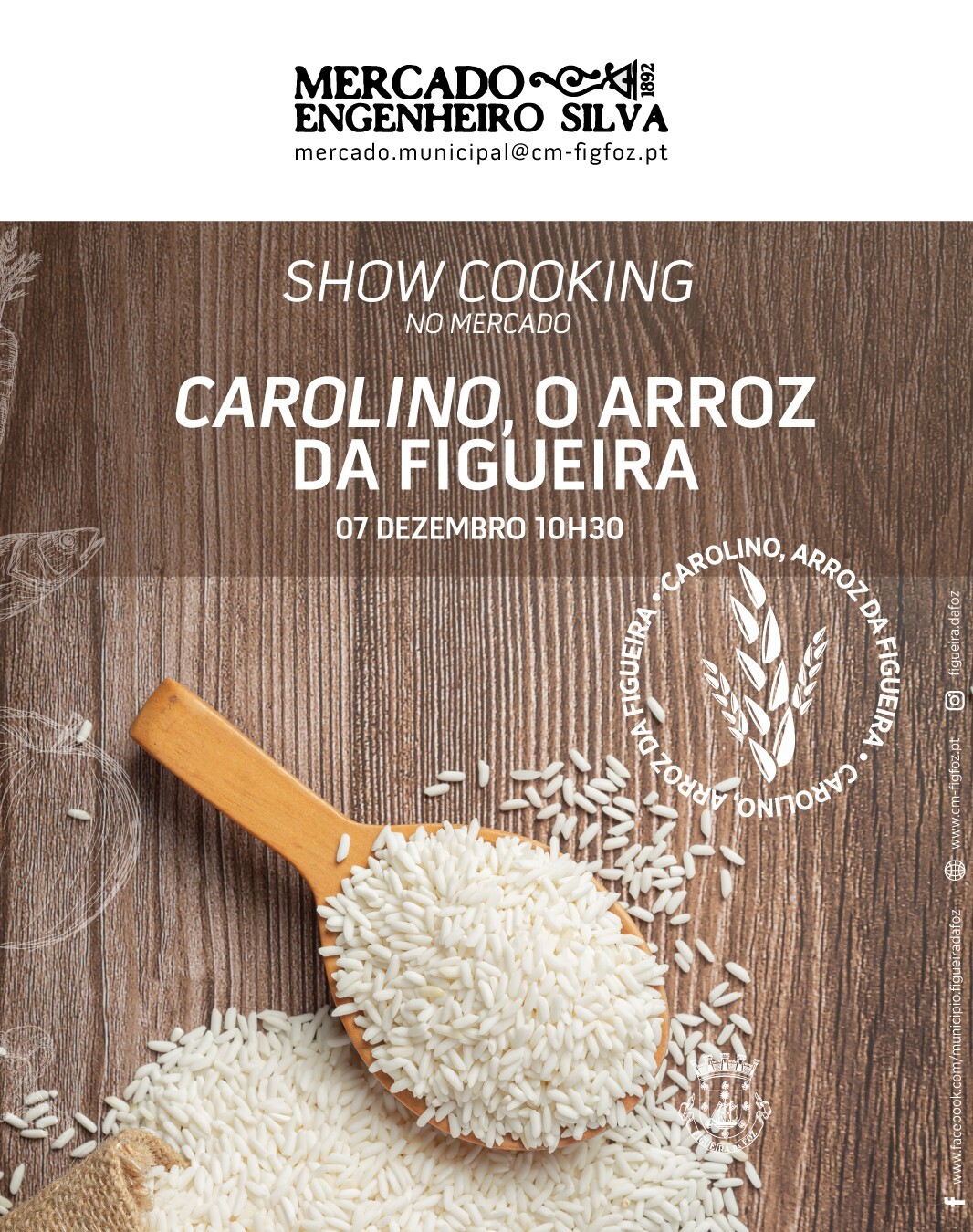 Desta vez por um/a convidado/a surpresa vai cozinhar uma receita utilizando o melhor arroz Carolino do Mundo - o Arroz da Figueira da Foz, e outros produtos locais que podem ser adquiridos nos Mercados Municipais.