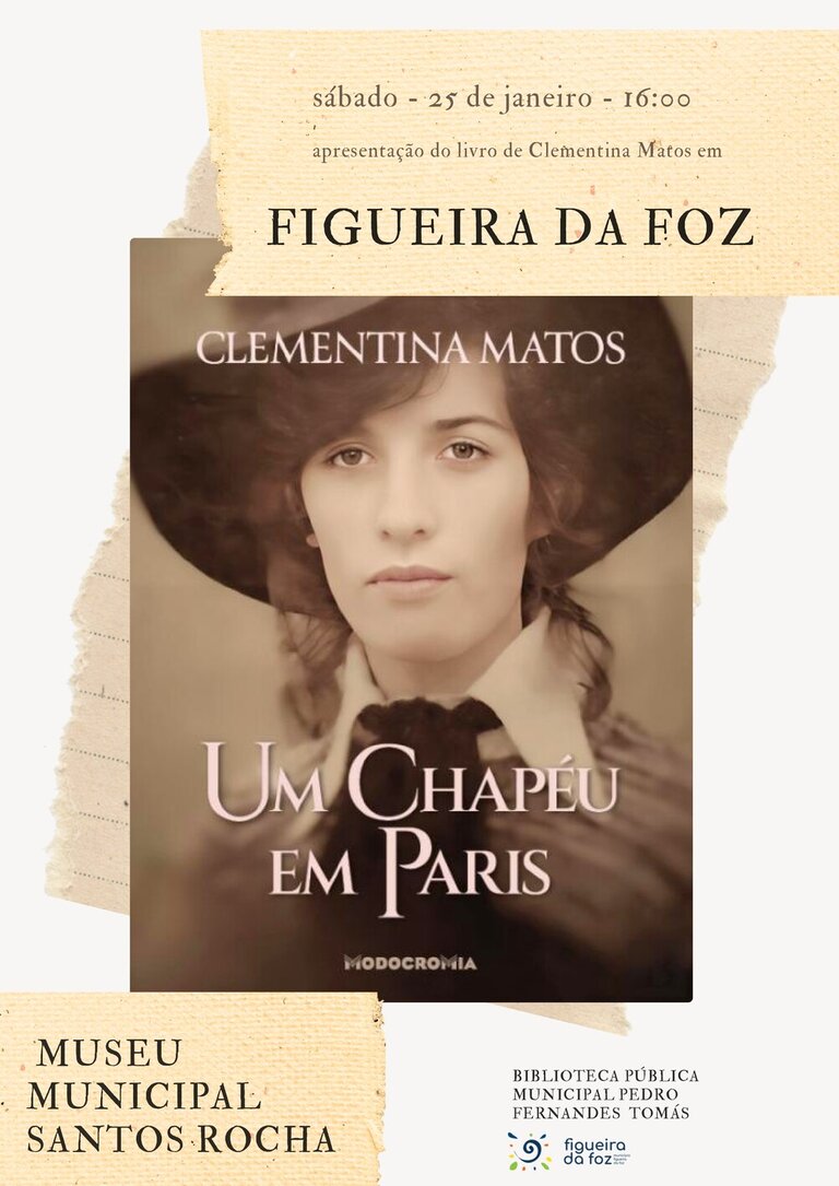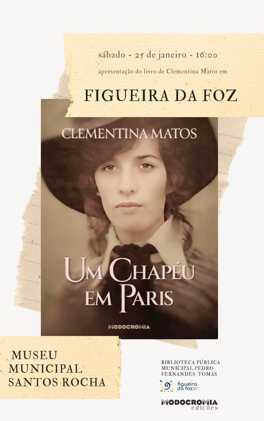 Clementina Matos, professora aposentada e autora de inúmeras obras literárias, regressa à Figueira da Foz para apresentar, oseu mais recente romance «Um Chapéu em Paris», com chancela da Modocromia.