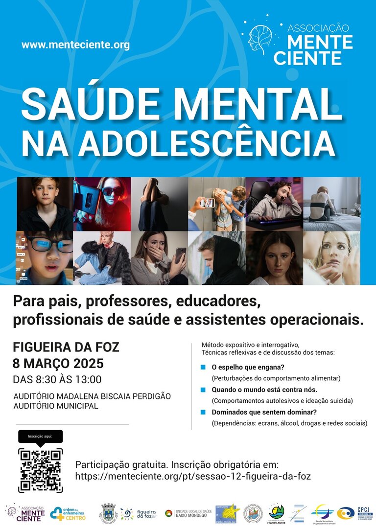 O Seminário “Saúde Mental na Adolescência”, que terá como mote Dependências: ecrãs, álcool, drogas e redes sociais, perturbações do comportamento alimentar, comportamentos autolesivos e ideação suicida.