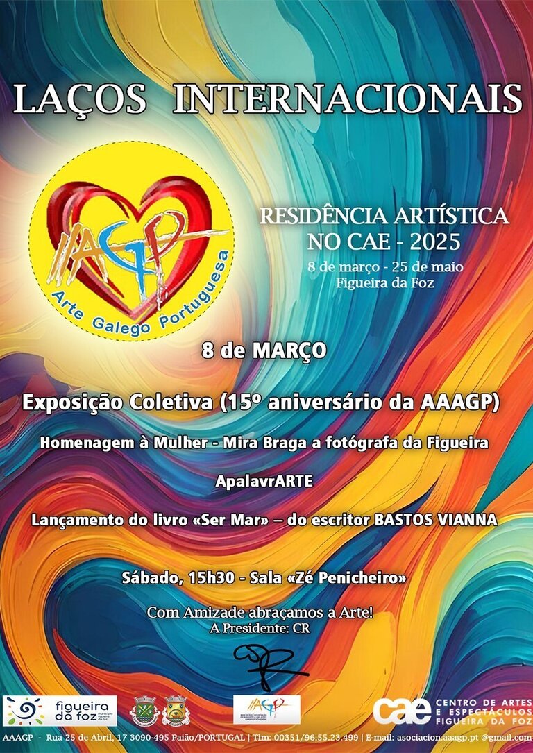 Abertura da exposição coletiva da AAAGP – Associação da Amizade e das Artes Galego Portuguesa, no âmbito da sua Residência Artística no CAE denominada “Laços Internacionais”, que se prolongará até 25 de maio.