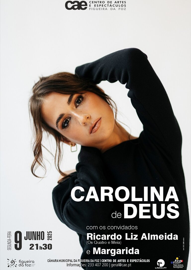 Neste concerto Carolina de Deus terá como convidadosRicardo Liz Almeida ( Os Quatro e Meia) e a jovem cantora e compositora Margarida.