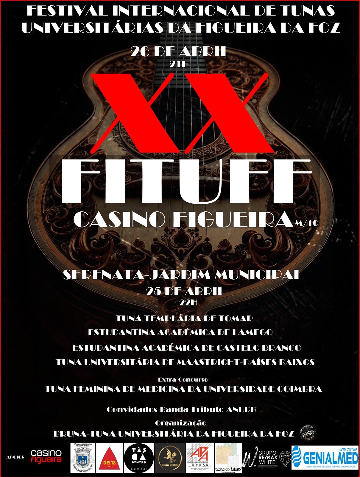 A Bruna - Tuna Universitária da Figueira da Foz realiza o XX Festival Internacional de Tunas Universitárias da Figueira da Foz, dias 25 e 26 de Abril.