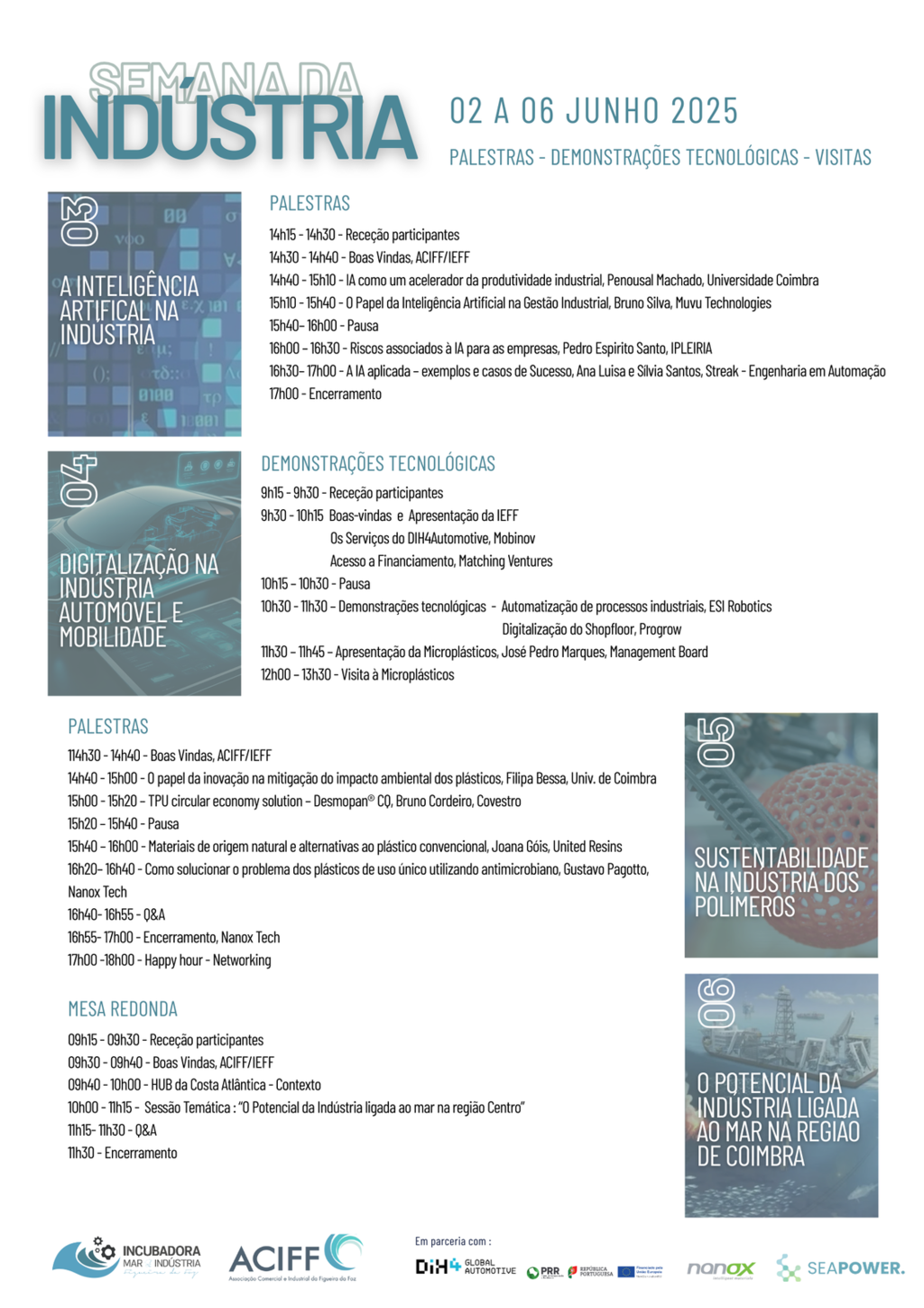 A Incubadora de Empresas e a ACIFF promovem, de 02 a 06 de junho, a Semana da Indústria da Figueira da Foz, cujo programa é composto por palestras, demostrações tecnológicas e visitas.