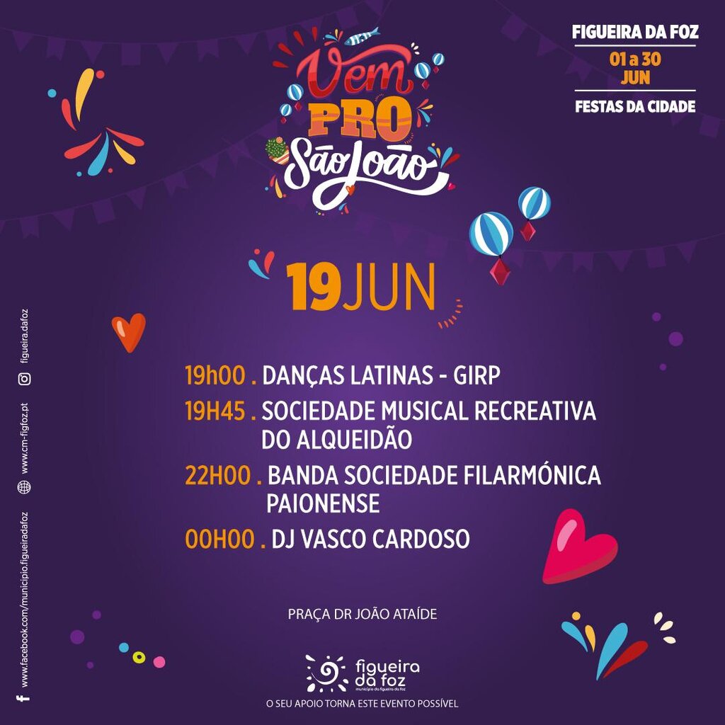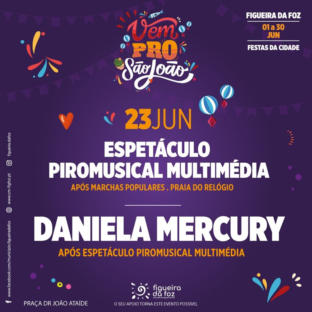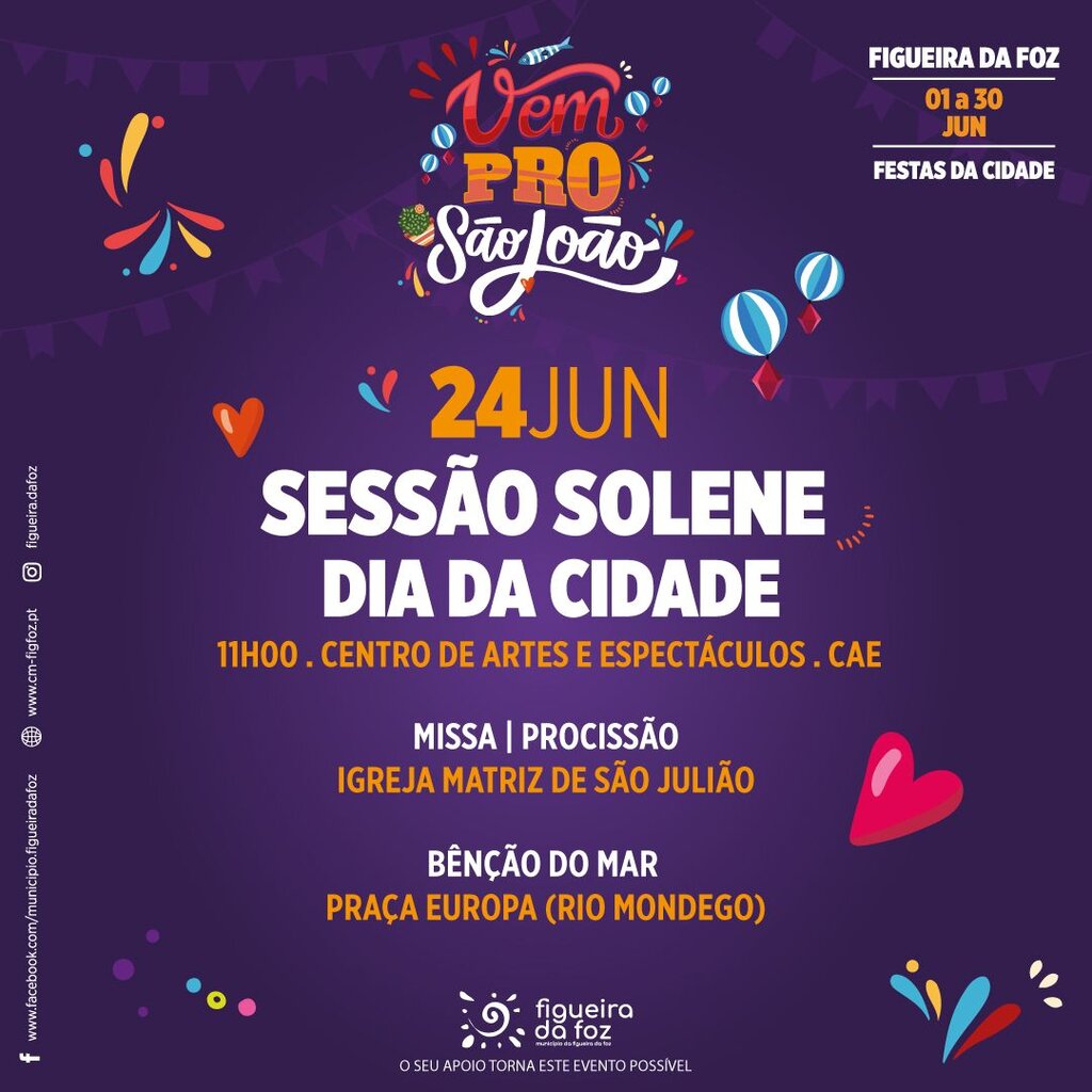 Com a celebração do São João, a edição de 2025 das Festas da Cidade vai animar a Figueira da Foz durante o mês de junho com a Festa da Sardinha e a Feira das Freguesias, onde para além dos grupos locais e da gastronomia das 14 freguesias do concelho, haverá concertos com artistas renomados do panorama artístico nacional e internacional- Némanus, Romana, Sons do Minho, Pedro Abrunhosa, Paulo Gonzo, Daniela Mercury e Anjos.