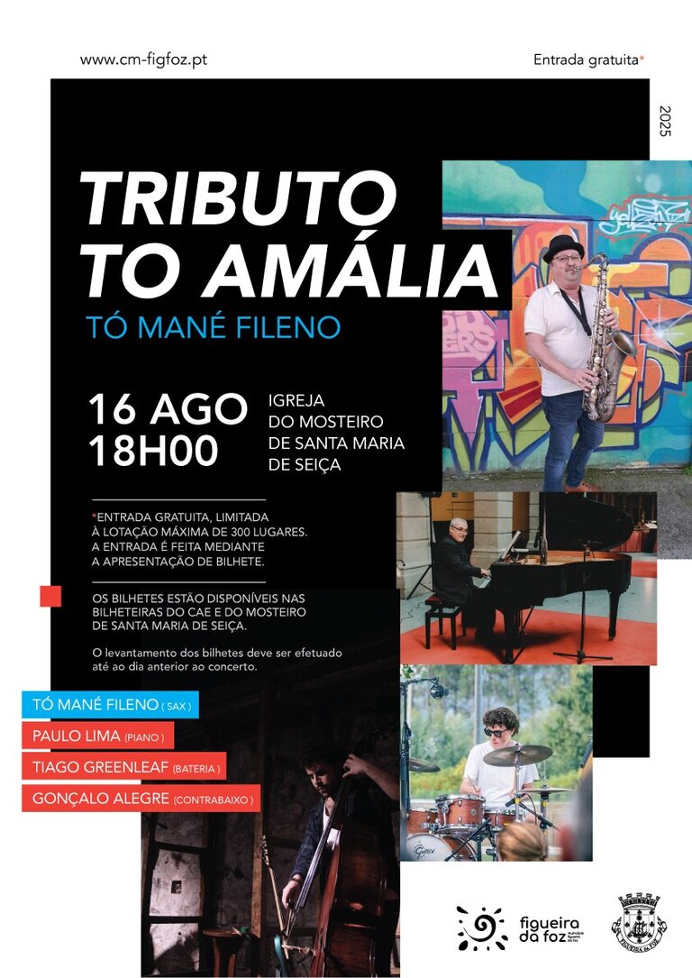 Bilhetes: disponíveis para levantamento na Ticketline, bem como nas bilheteiras do CAE e do Mosteiro de Santa Maria de Seiça.