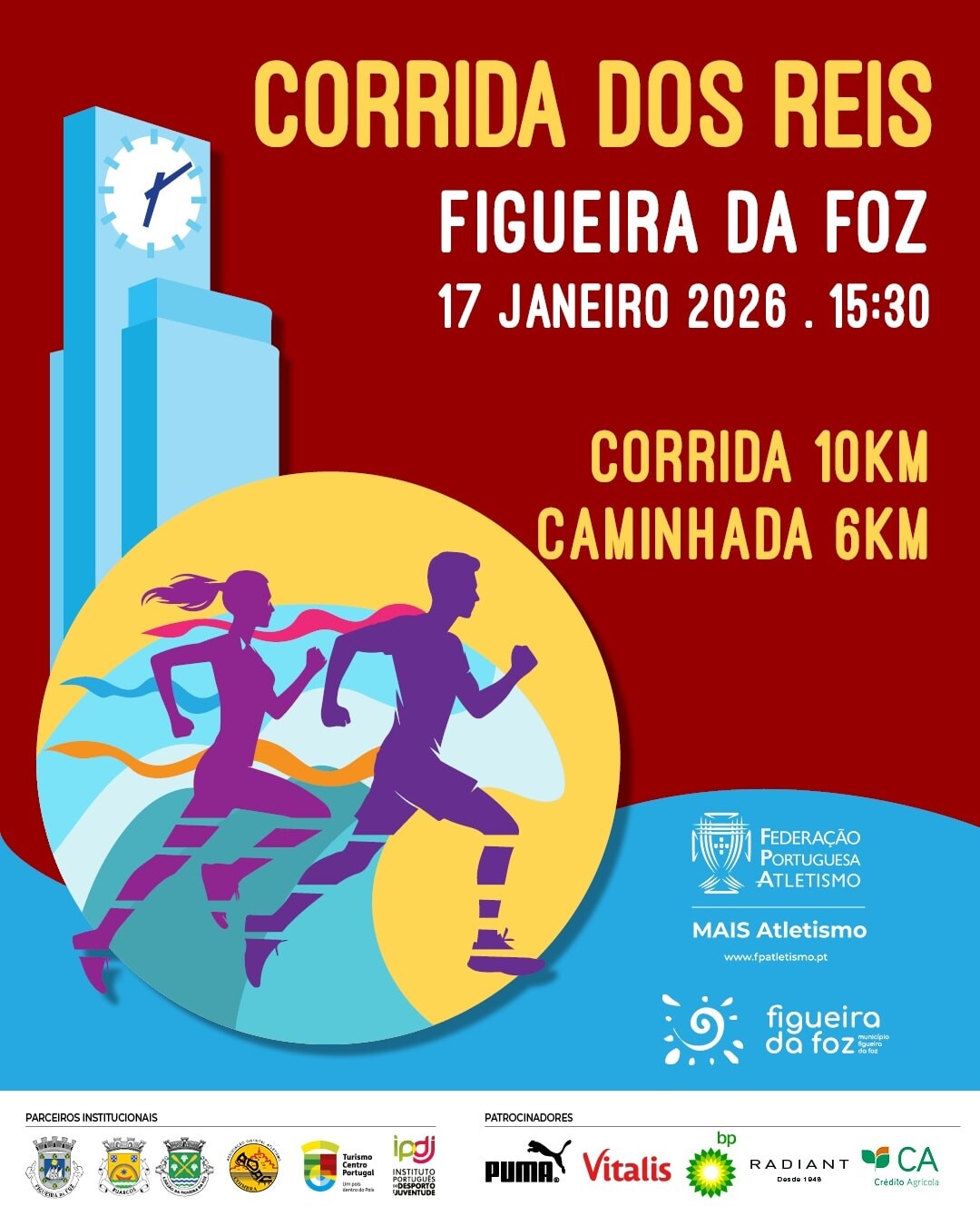A Federação Portuguesa de Atletismo, o Município da Figueira da Foz, Turismo do Centro e a Associação Distrital de Atletismo de Coimbra, vão co-organizar, dia 17 de janeiro, a Corrida dos Reis (10km) e a Caminhada (6km).