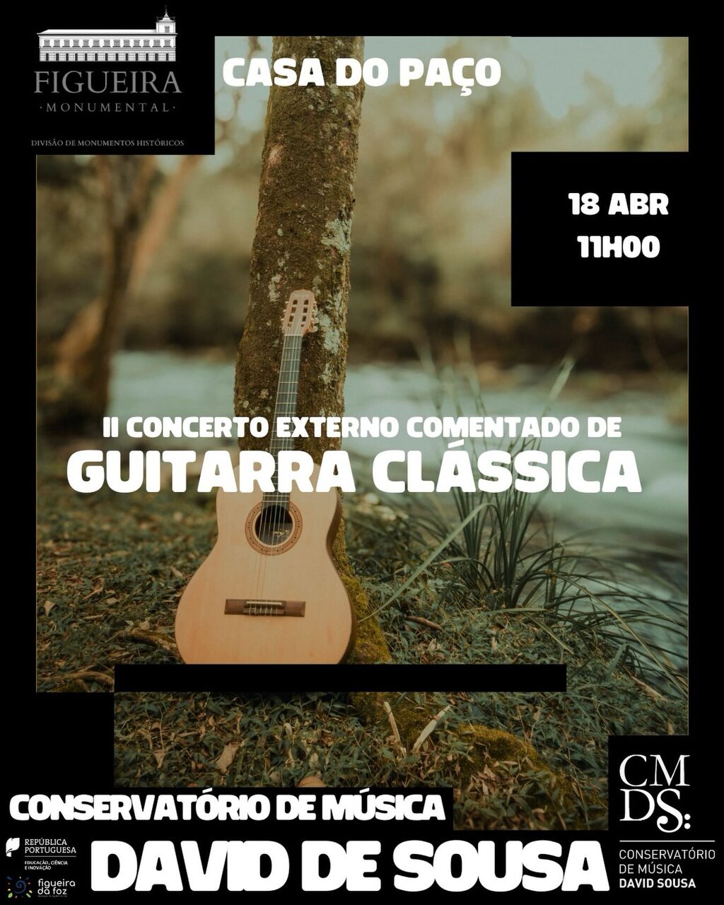 A Casa do Paço volta a afirmar-se como palco privilegiado de fruição cultural, acolhendo, nos dias 17 e 18 de abril, mais um fim de semana musical no âmbito da parceria entre o Conservatório de Música David de Sousa (CMDS) e o Município da Figueira da Foz (Divisão de Monumentos Históricos), que privilegia uma programação cultural regular desenvolvida no monumento, consolidando-o enquanto espaço vivo de encontro entre património, educação e criação artística.