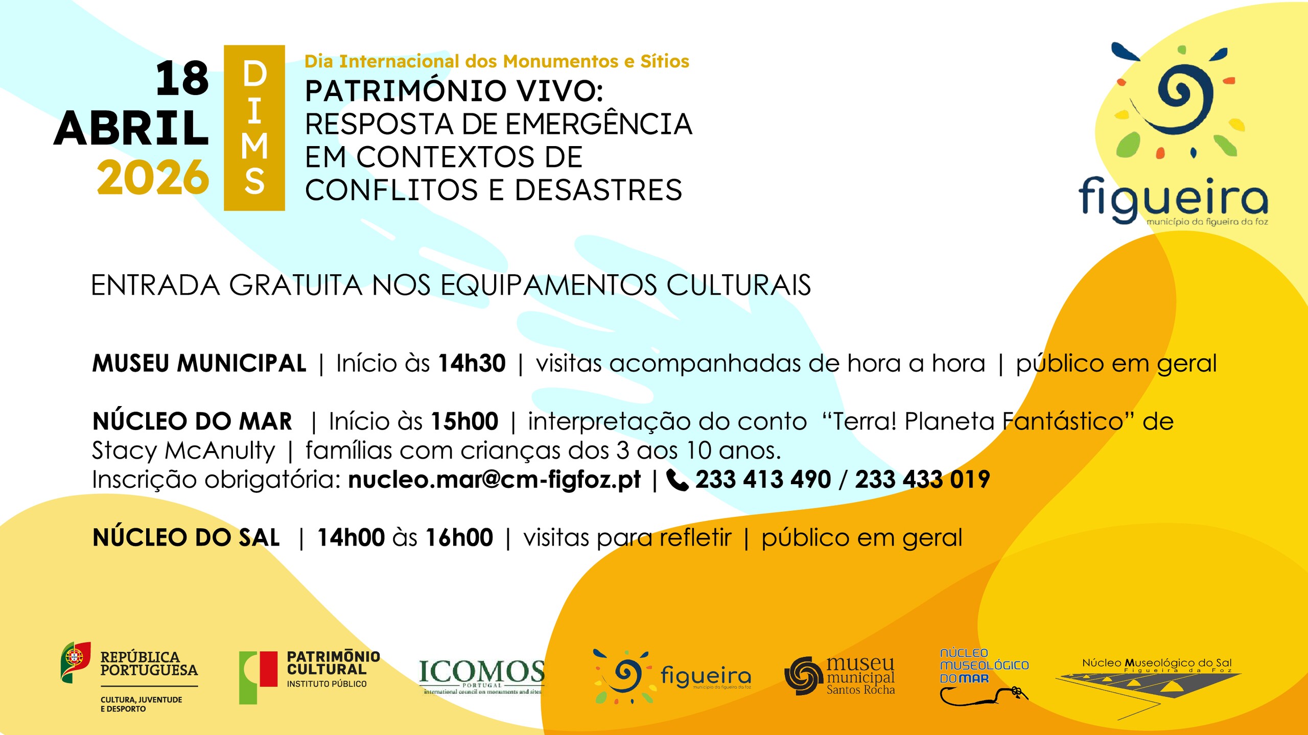 O Município da Figueira da Foz assinala no próximo sábado, 18 de abril, o Dia Internacional dos Monumentos e Sítios, este ano subordinado ao tema “Património Vivo: Resposta de Emergência em Contextos de Conflitos e Desastres”, com iniciativas no Museu Municipal Santos Rocha (MMSR), Núcleos Museológicos do Mar e do Sal, Mosteiro de Santa Maria de Seiça e Casa do Paço.
