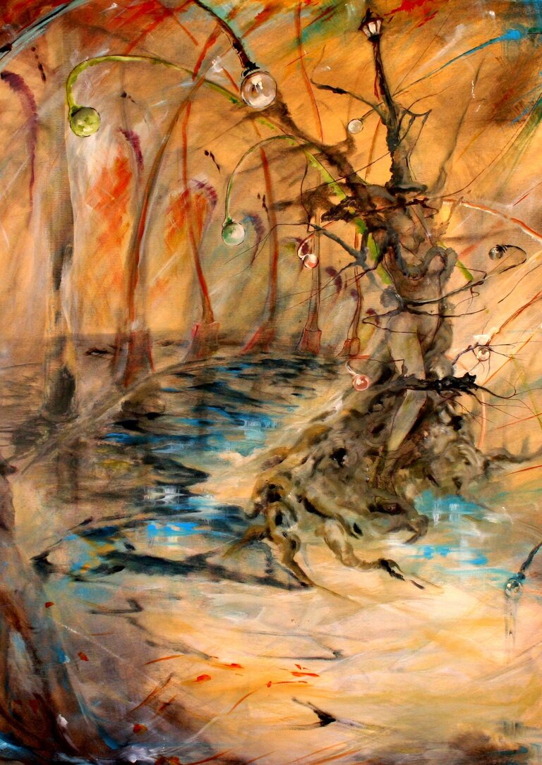 “Com mais ou menos luz, caminhos torpes e uma mão cheia de pequenas coisas, a vida desenha-se a traços rápidos. À luz da Figueira, uma vez mais, os encontros viram arte. Entre desenho e pintura, materiais vários e algum trabalho ao vivo, esta exposição é feita de sons e perfumes que me perseguem ao longo da vida. Benditos ou malditos, são a minha encruzilhada. Iluminam o meu caminho.”