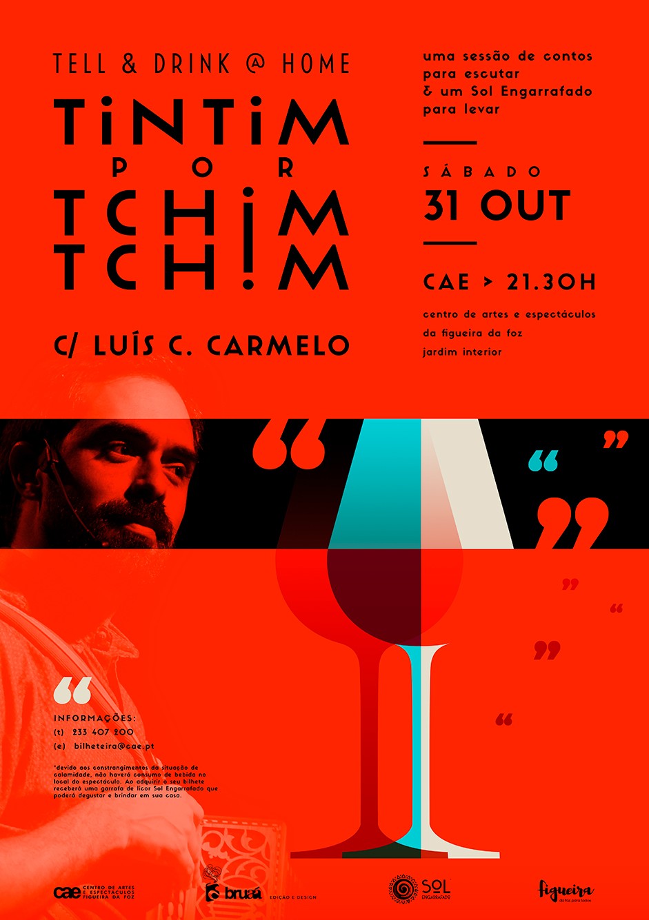 Com organização conjunta do Serviço Educativo do CAE e Bruaá Edição e Design, com a parceria do Sol Engarrafado/Dapaval, regressa já no dia 31 de outubro a sessão de contos Tell & Drink @ Home, desta feita com o contador Luís Correia Carmelo.