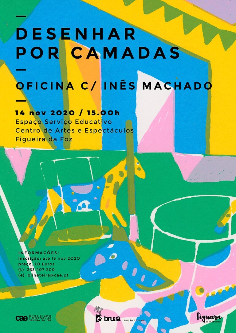 O CAE tem patente a exposição de ilustração da ilustradora Inês Machado, sendo ela a dinamizadora da oficina “Desenhar por Camadas”, uma oficina de ilustração a partir da exploração de técnicas de desenho e pintura. A partir de um conjunto de imagens recolhidas, o objetivo é que cada participante desenvolva uma nova ilustração e que a construa por camadas. Primeiro de forma analógica a preto e branco, usando materiais riscadores como: marcadores, pastéis de óleo, cera ou lápis preto e tinta-da-china ou guache sobre papel. Por fim, vamos passar do analógico ao formato digital, através de breves noções de edição, testando sobreposições, cores e texturas.
