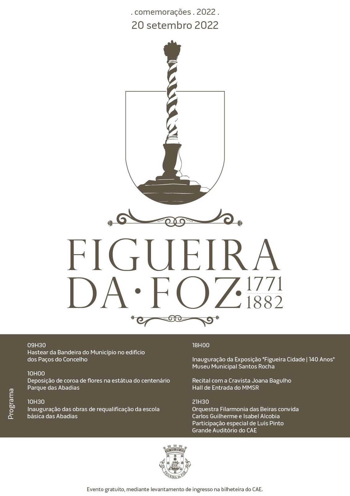 O Presidente da Câmara Municipal da Figueira da Foz, Pedro Santana Lopes, tem a honra de convidar V. Ex.ª para as iniciativas constantes do programa comemorativo do 140.º Aniversário da Elevação da Figueira da Foz a Cidade, no próximo dia 20 de setembro, terça-feira.