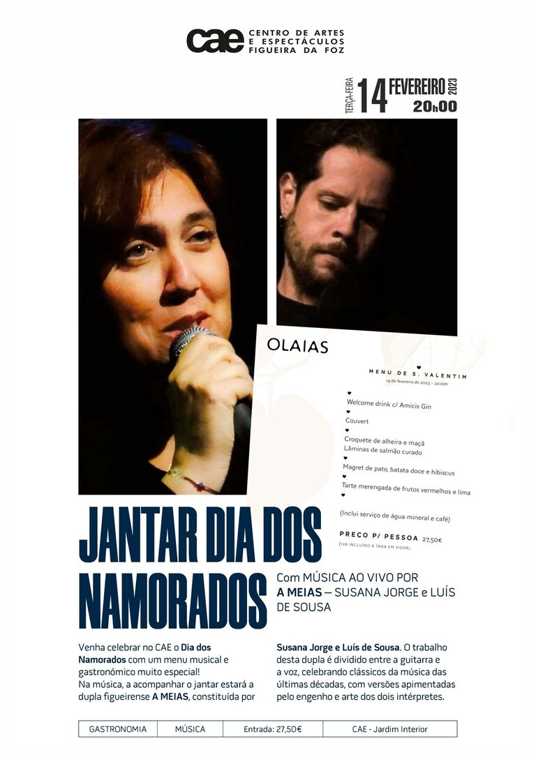 - Jantar do Dia dos Namorados com Música ao Vivo pelo "A MEIAS", de Susana Jorge e Luís de Sousa