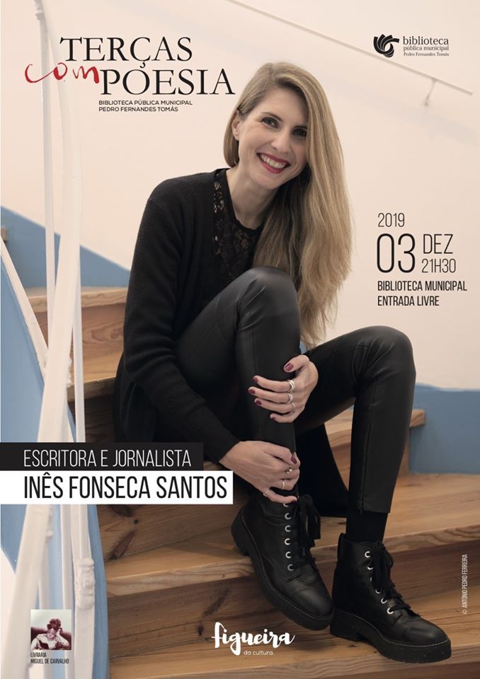 A última sessão de 2019, das «Terças Com Poesia», que continuará a ter entrada livre (sujeita à lotação da sala), será dinamizada pela escritora e jornalista Inês Fonseca Santos, que editou e apresentou programas como "Os Livros" e "Todas as Palavras", foi coordenadora, no Teatro São Luiz, do ciclo de leituras para a infância “Poesia-me”, publicou as obras "A Palavra Perdida" e "A Habitação de Jonas", entre outras, e é, atualmente, co-editora e co-apresentadora do programa Todas as Palavras (RTP3) e especialista do Plano Nacional de Leitura na área infanto-juvenil.