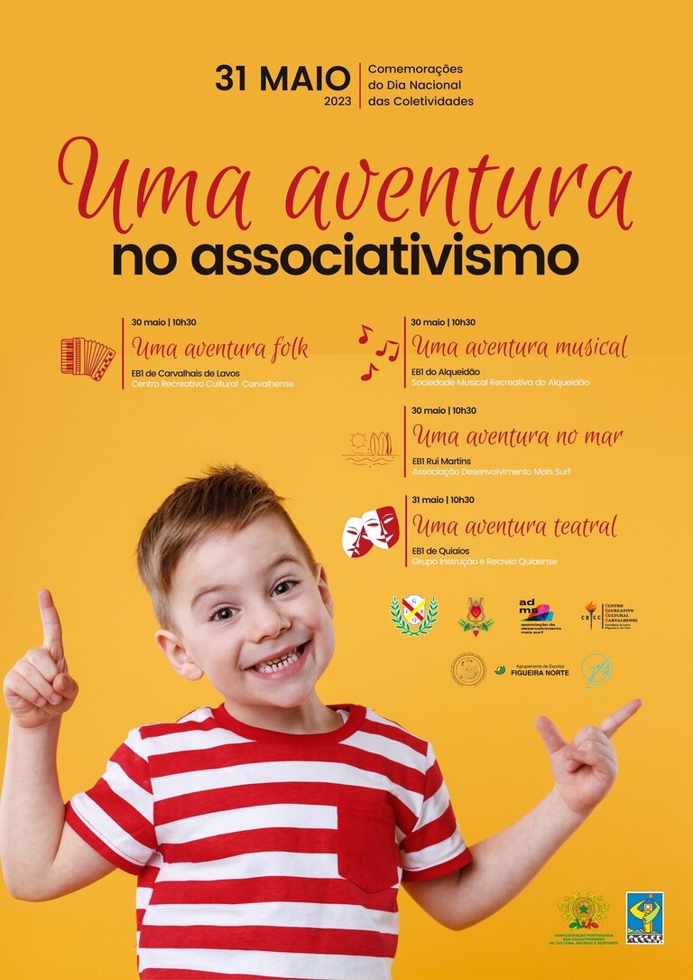 «Uma aventura no associativismo» tem como principal objetivo aproximar alunos do primeiro ciclo do ensino básico à realidade associativa que se realizará entre os dias 30 e 31 de maio, quatro atividades distintas, que levam crianças de quatro escolas a conhecer as atividades principais de quatro coletividades do concelho