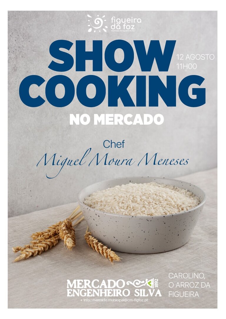 O Município da Figueira da Foz promove, dia 12 de agosto, pelas 11h00, no Mercado Municipal Engº Silva, o Showcooking « Carolino, o Arroz da Figueira», dinamizado pelo Chef Miguel Moura Meneses , que "tem construído ao longo dos anos um trajeto sério e consistente dentro do panorama gastronómico nacional e que pratica uma cozinha muito baseada no Produto e na Sazonalidade do mesmo”.
