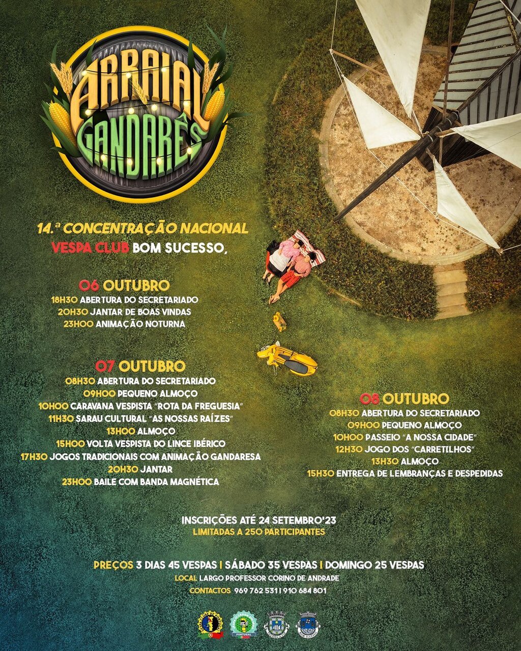 O Vespa Club Bom Sucesso promove a realização, no Largo da Feira do Bom Sucesso, dias 06, 07 e 08 de outubro, a sua 14ª Concentração Nacional, integrada no calendário nacional do Vespa Clube de Portugal e intitulada "ARRAIAL GANDARÊS".