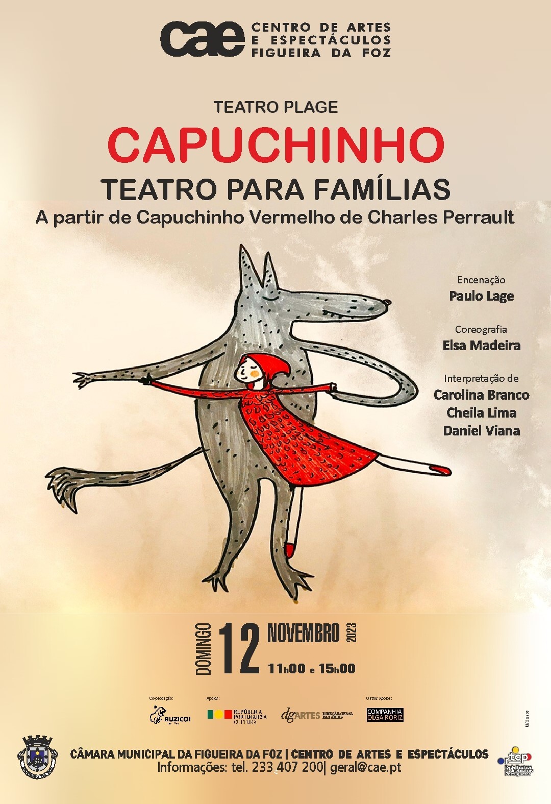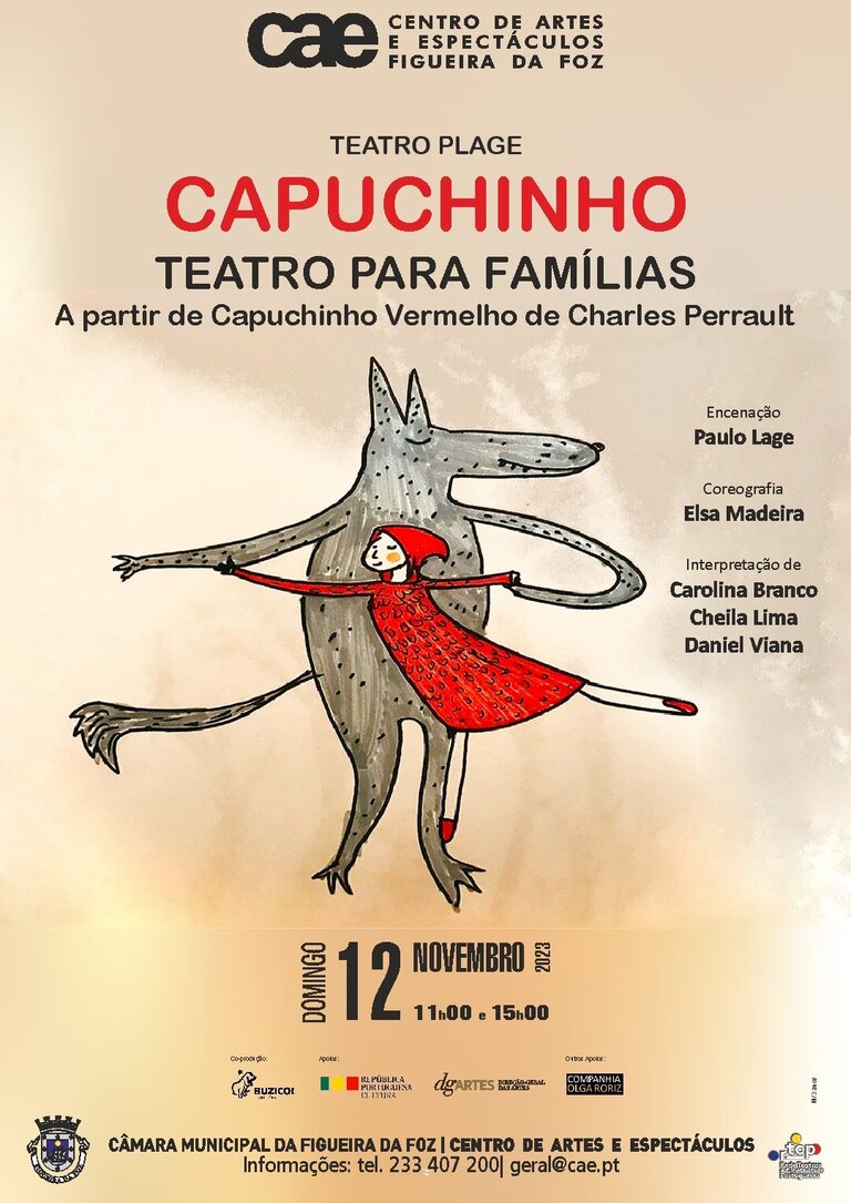 “Mamã, avó, floresta, bolo.” A palavra dita, narrada a partir de um livro que se abre, sugere o poder transformador do cenário em imaginário. “Cuidado, lobo, perigoso.” A narradora-mãe adverte o desconhecido. E a Capuchinho-bailarina, em seu singular percurso, dança ao luar com o lobo mentiroso, na floresta que também é a casa da avó de boca tão grande que afinal era o lobo, que não era assim tão mau, mas que tinha fome. O caçador ouve o grito e não mata, mas salva. A moral é apaziguadora.