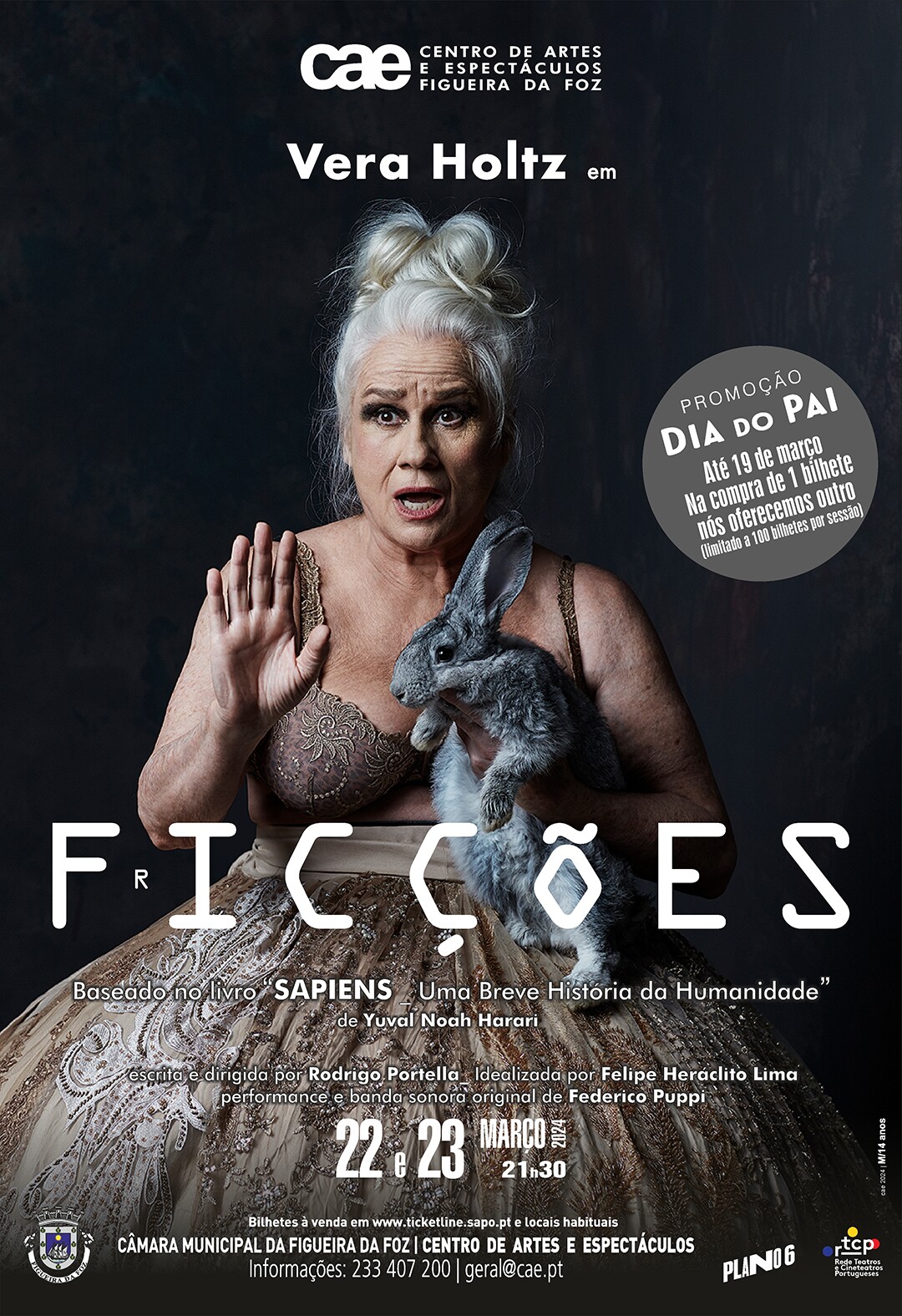A peça “Ficções” é inspirada no best-seller “Sapiens”, de Yuval Harari, onde a atriz Vera Holtz desdobra-se em personagens, canta, improvisa, conversa com a plateia, brinca e instiga-a a pensar. Um desafio que nos propõe reflexões sobre a evolução humana e o caminho que ela leva.