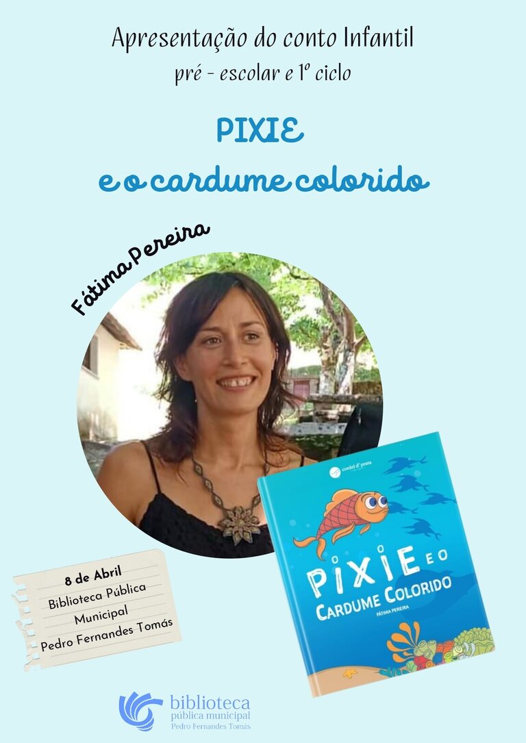 A sala infanto juvenil da Biblioteca Pública Municipal Pedro Fernandes Tomás) recebe a autora Fátima Pereira, para várias sessões de apresentação do livro infantil «Pixie e o cardume colorido»