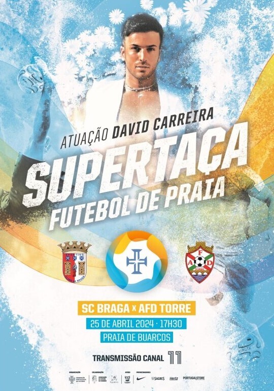 A Praia de Buarcos recebe dia 25 de abril, pelas 17h30, a Supertaça de Futebol de Praia 2024, disputada entre o SC Braga e a AFD Torre.