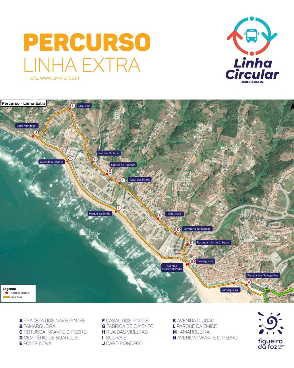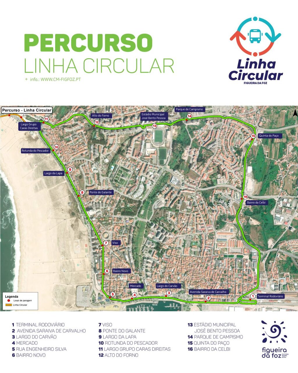 - Linha Circular: Terminal Rodoviário – Buarcos - Tavarede – Terminal Rodoviário.