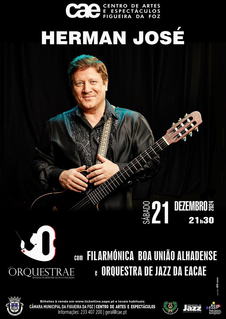 Este é o último espetáculo da 2ª edição do ORQUESTRAE, que junta em palco Herman José com a Banda Filarmónica da Sociedade Boa União Alhadense e Orquestra de Jazz da Escola de Artes do CAE.