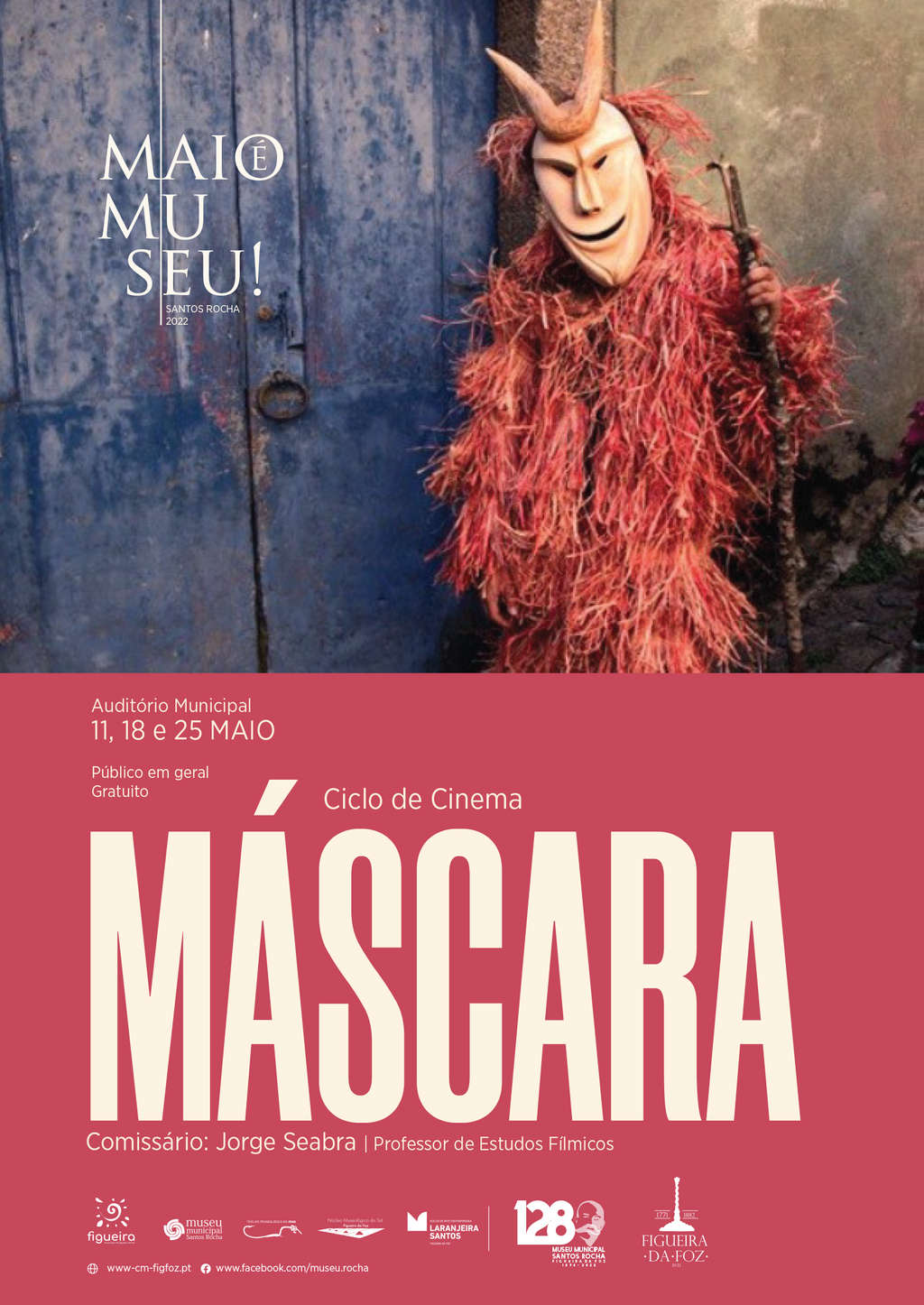 Para este «Maio é Museu!», o Município da Figueira da Foz mantém a aposta na diversidade de iniciativas e de públicos. A programação inclui, nomeadamente, atividades em torno da temática da máscara e dos mascarados, numa perspetiva antropológica alargada, onde cabem inúmeras formas de expressão artística, como a música, a dança, o cinema. A mesma aglutina também algumas das datas comemorativas mais significativas para o MMSRS, como o aniversário da sua fundação, o Dia Nacional do Azulejo e o aniversário do nascimento do Maestro David de Sousa ( todos a 06 de maio); a Noite Europeia dos Museus (14 maio), o Dia Internacional dos Museus (18 de maio) e o 19º aniversário do Núcleo Museológico do Mar ( 29 de maio).